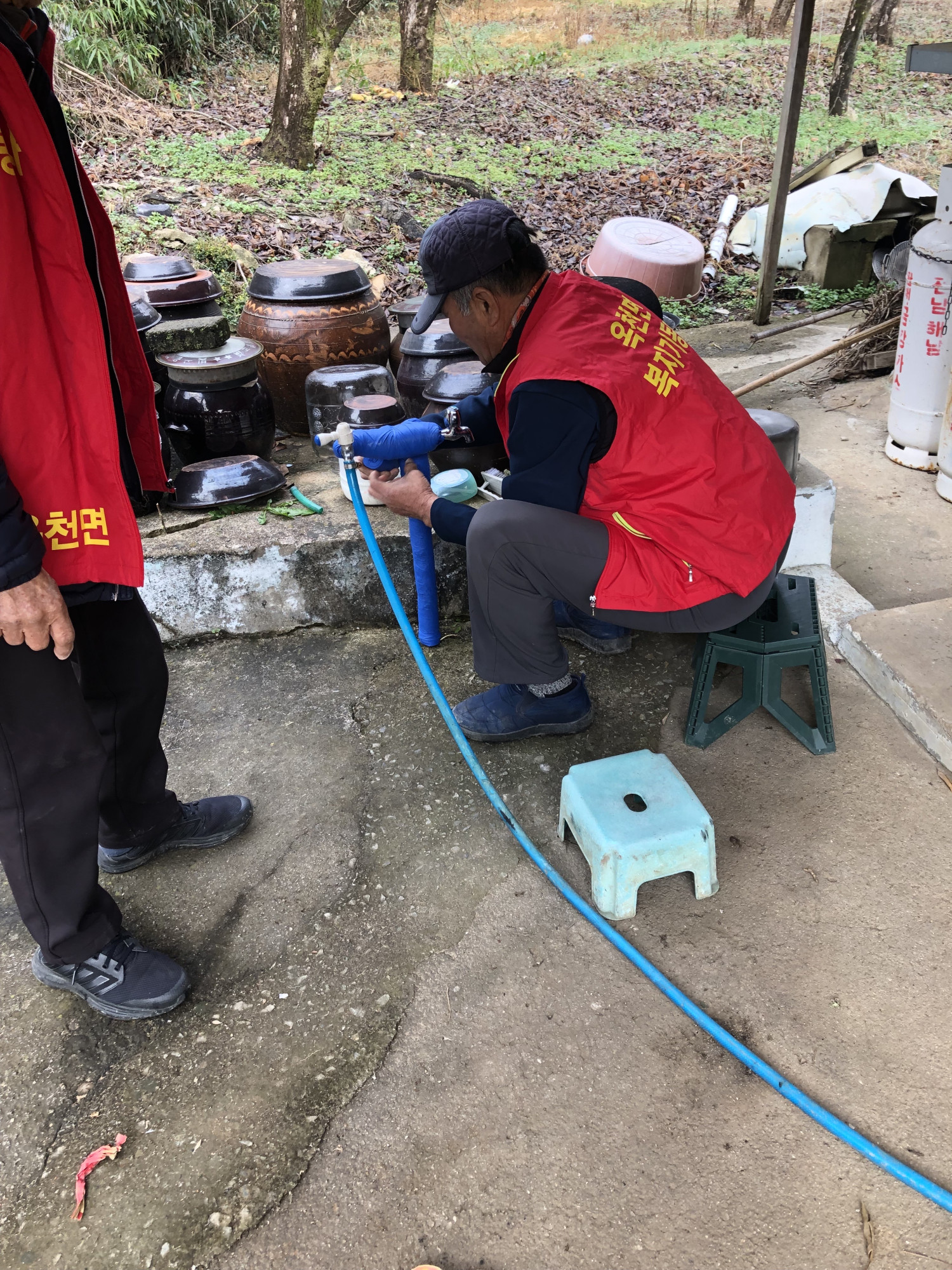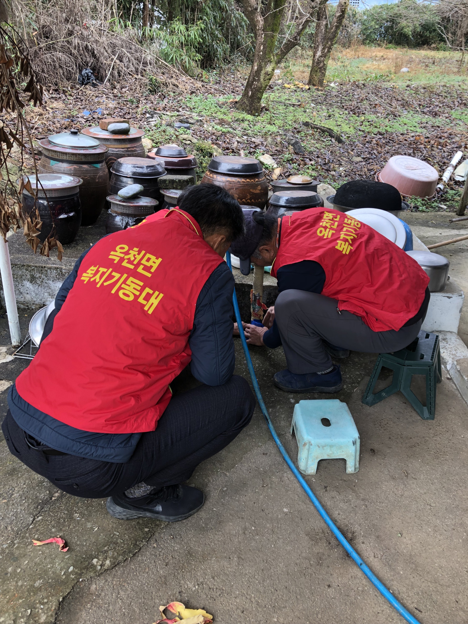 수도관 동파방지 위해 노후된 수도관에 보온재를 싸러 복지기동대원들이 출동하였습니다??