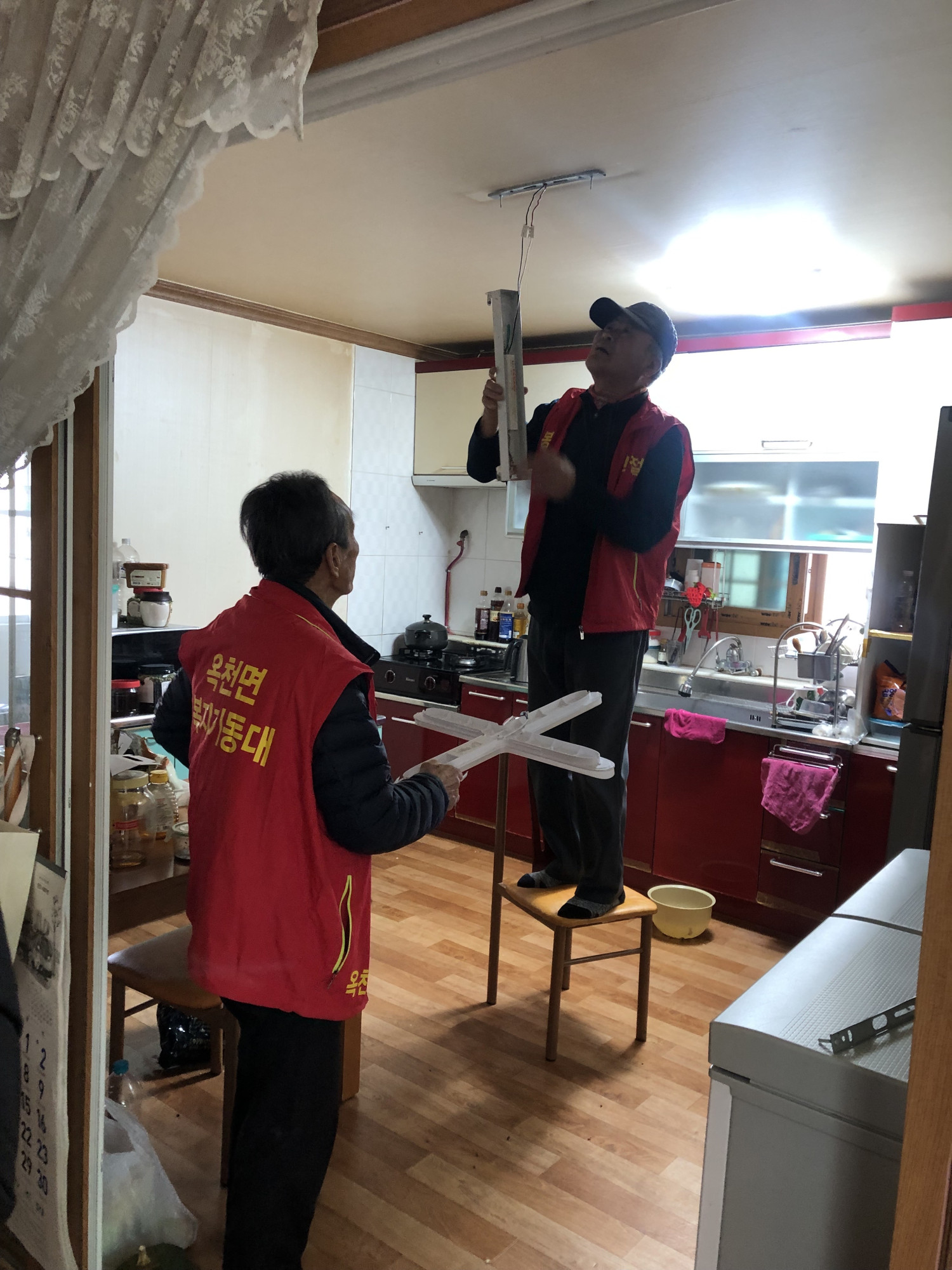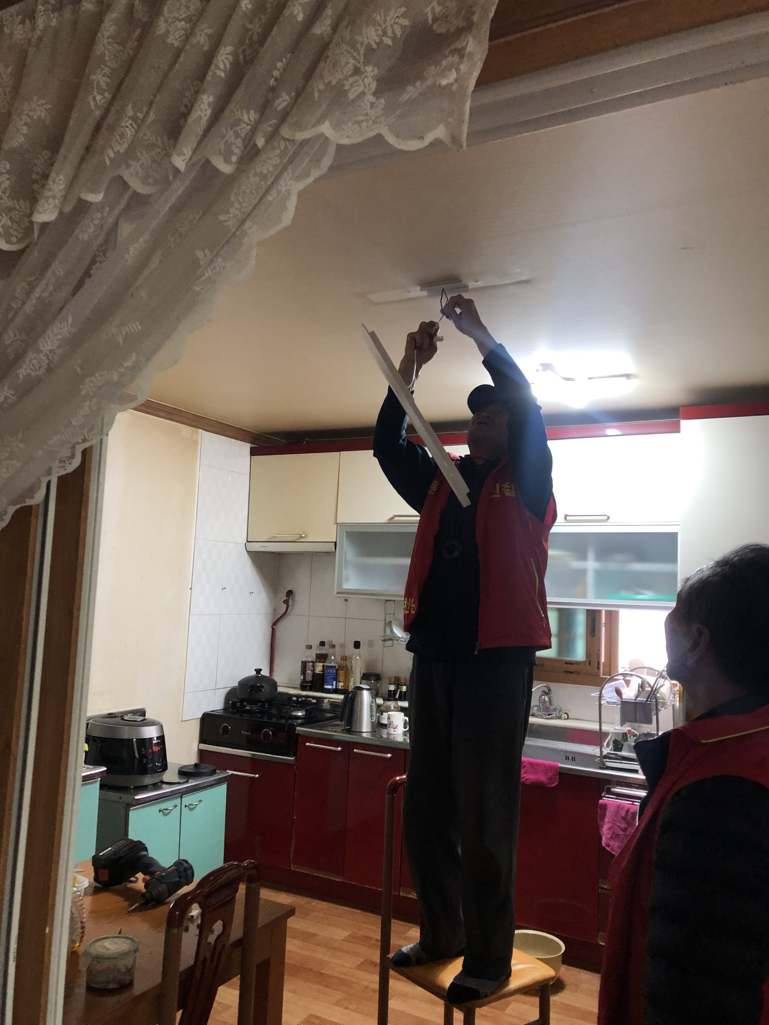 송운마을 저소득 가구의 주거환경개선 활동을 하였습니다. 복지기동대원분들이 새롭게 달아주신 전등에 눈이 반짝?