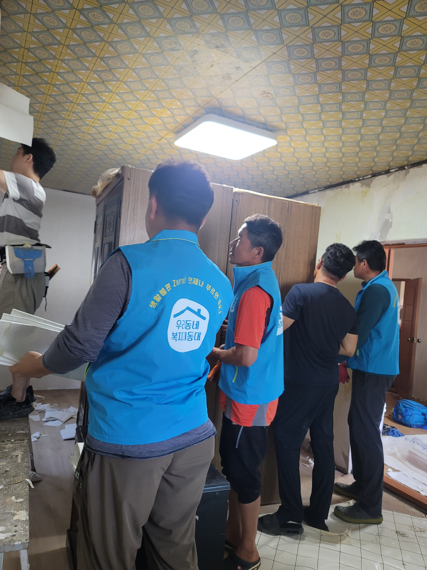 ㅡ 장애인 노인부부가구로 거동 불편하셔서 외출도 못하고 생활하시는 분으로 신광 우리동네 복지기동대가 출동하여 도배, 장판 교체 작업 밎 생활하기 편하도록 가구 위치변경을 도왔습니다.