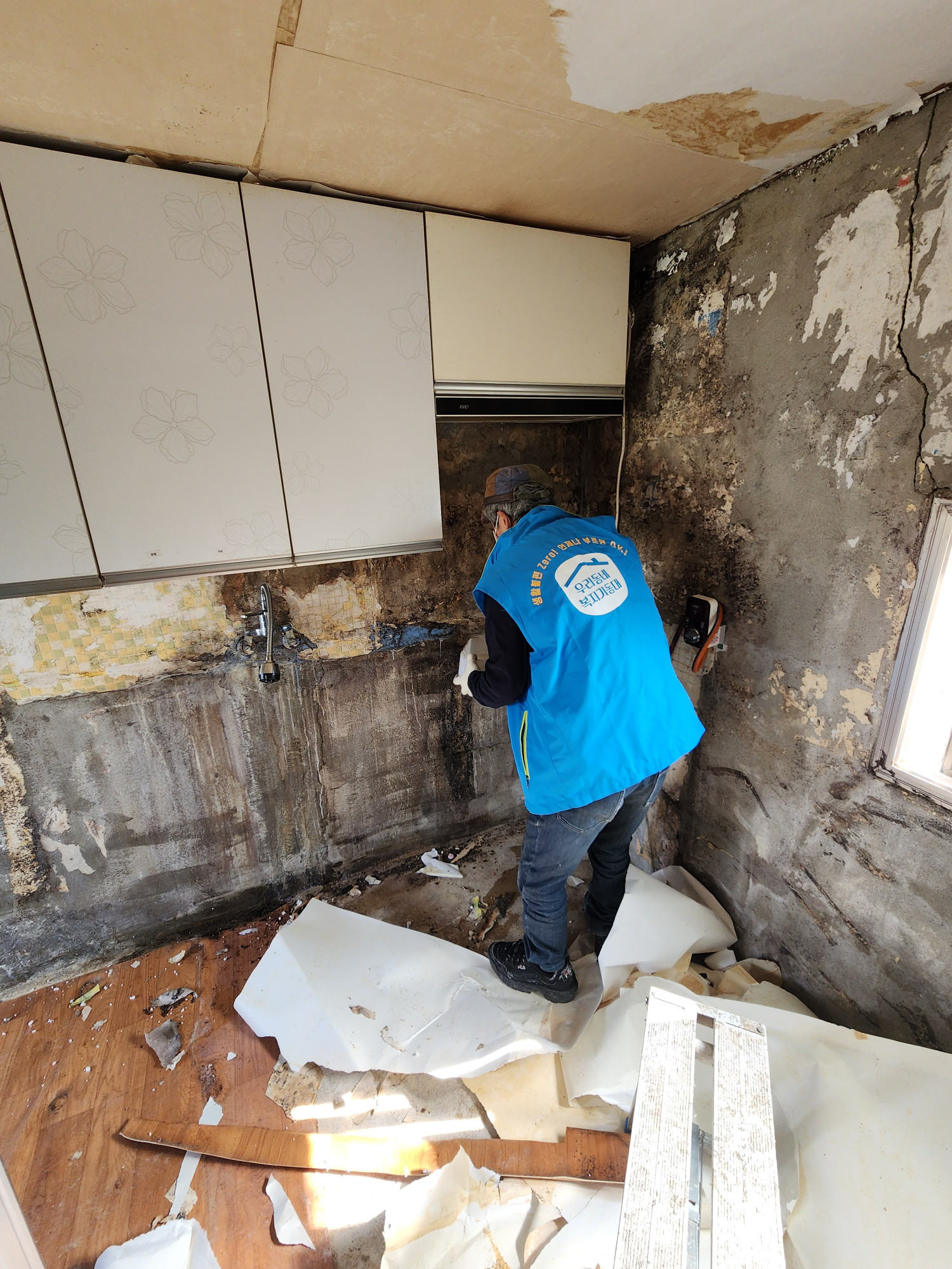 언제든 부르면 오케이!! 우리동네 복지기동대!! 도배 장판이 필요한 노부부댁을 다녀왔어요. 곰팡이가 피고 찢어진 장판때문에 불편한 생활을 하고 계셨는데 도배랑 장판을 교체해드렸답니다.
