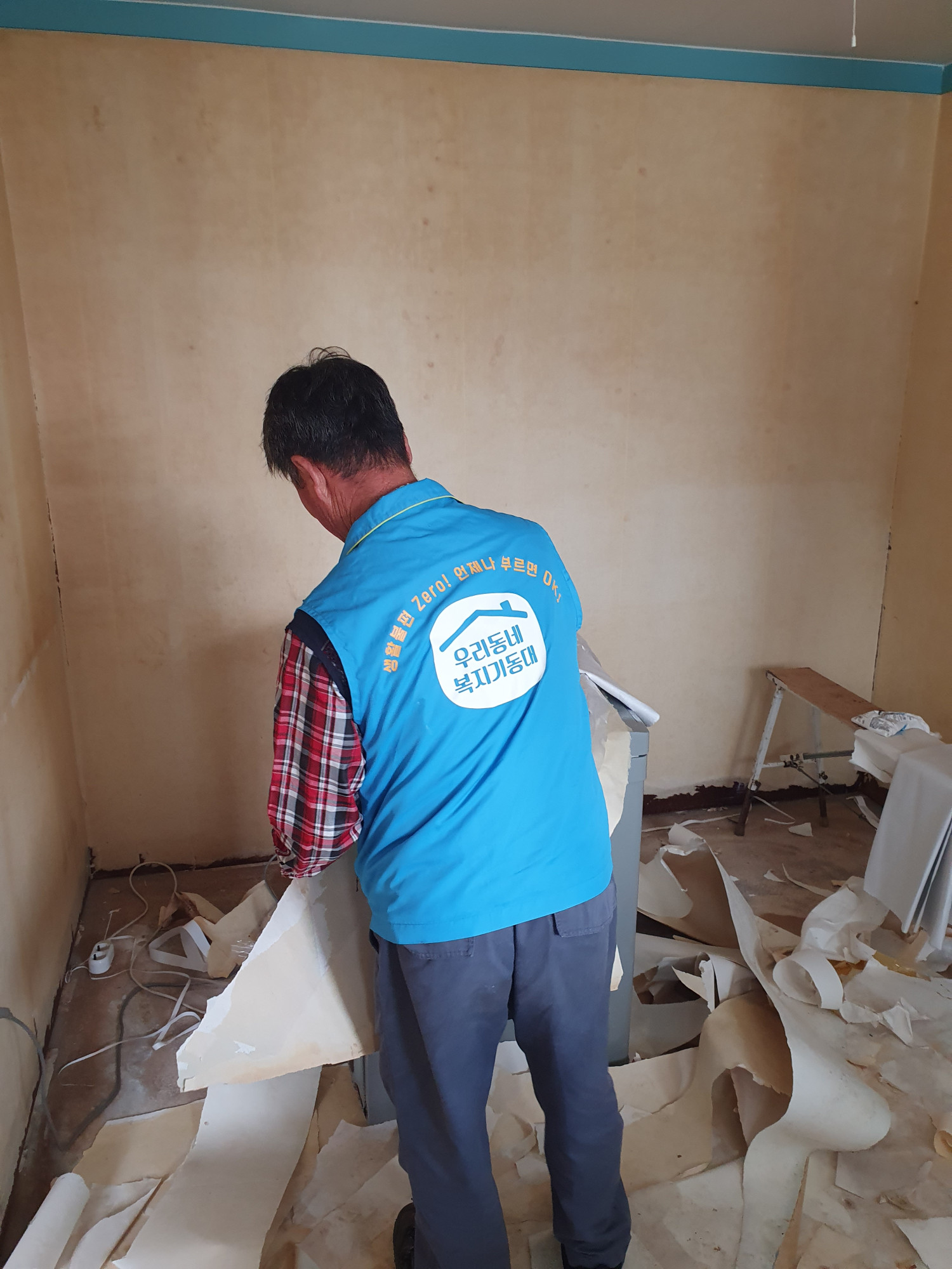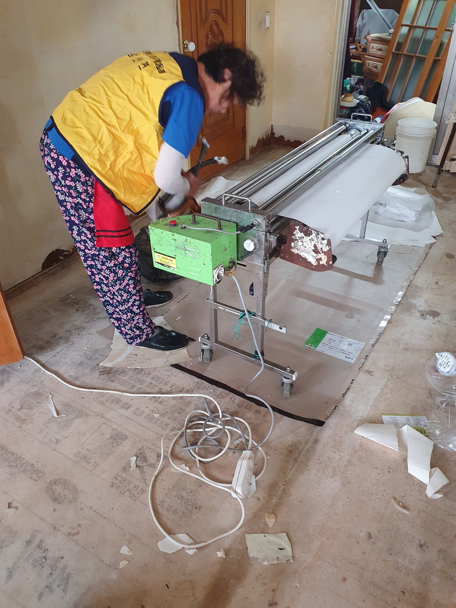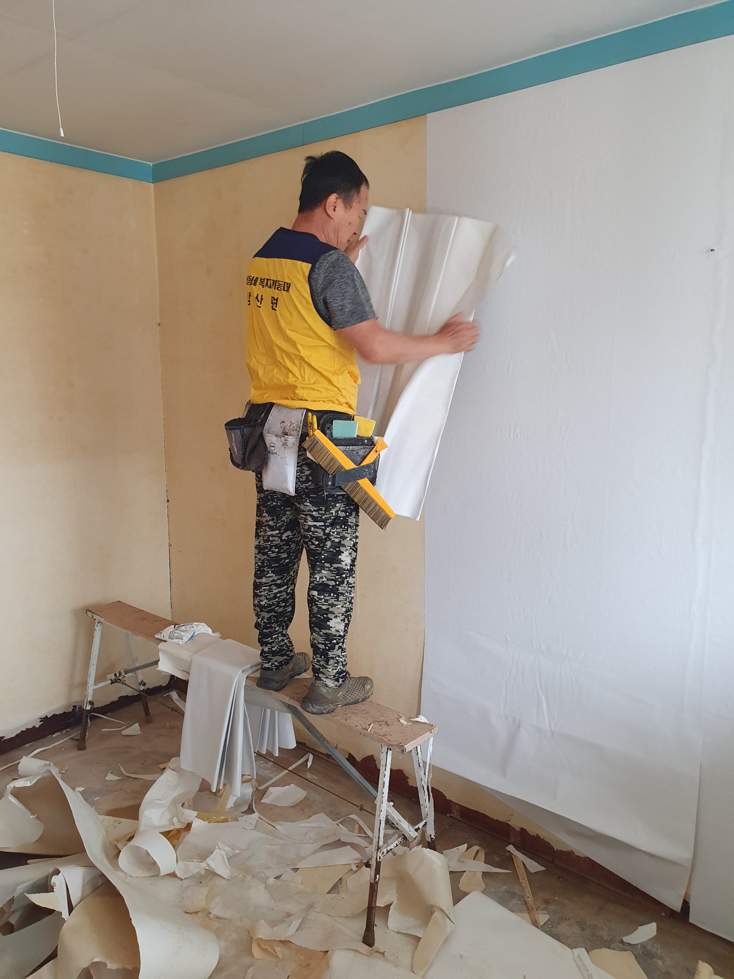 신리마을 어르신 집의 오래된 장판을 교체하고 도배를 해드렸습니다.