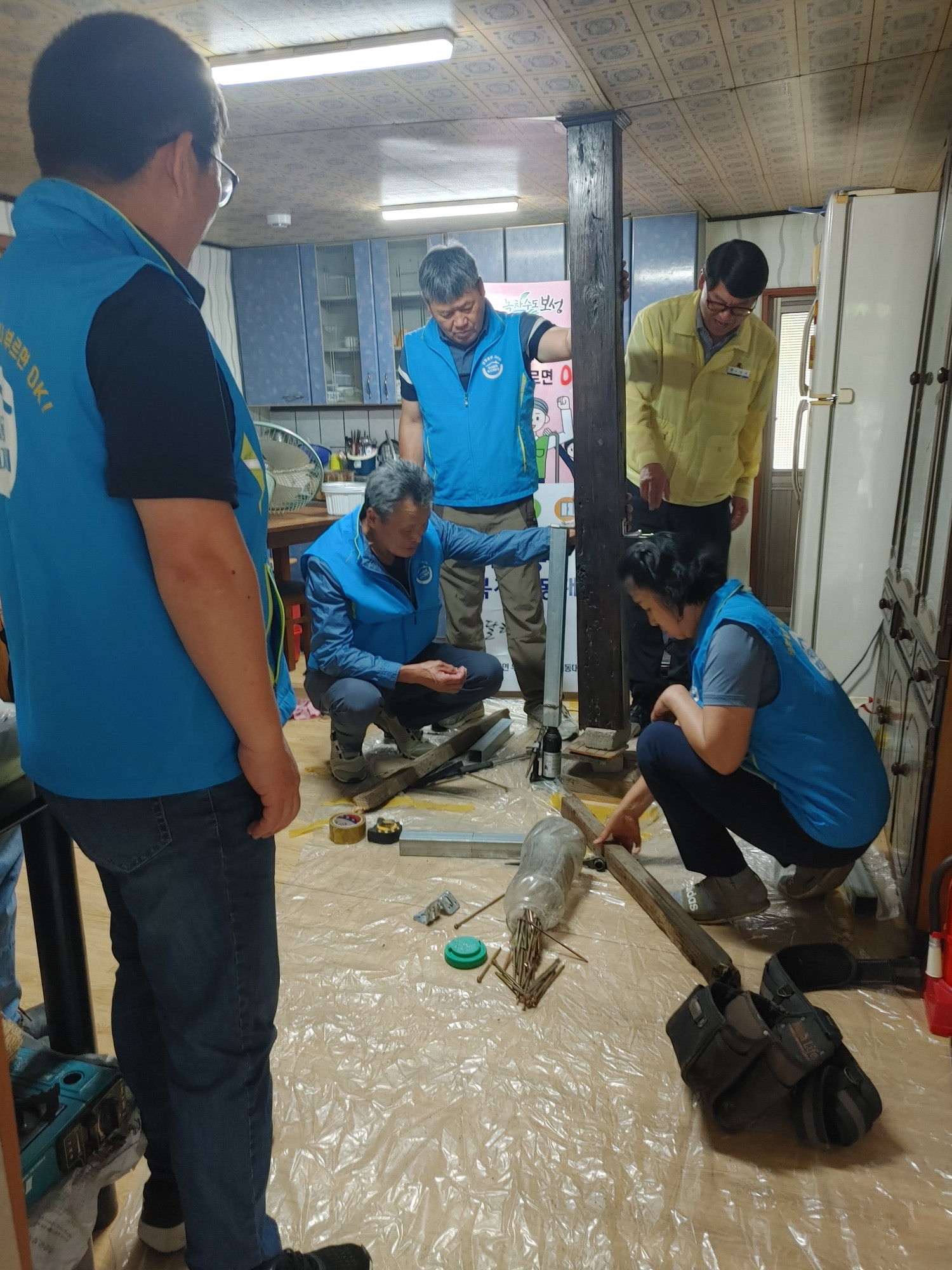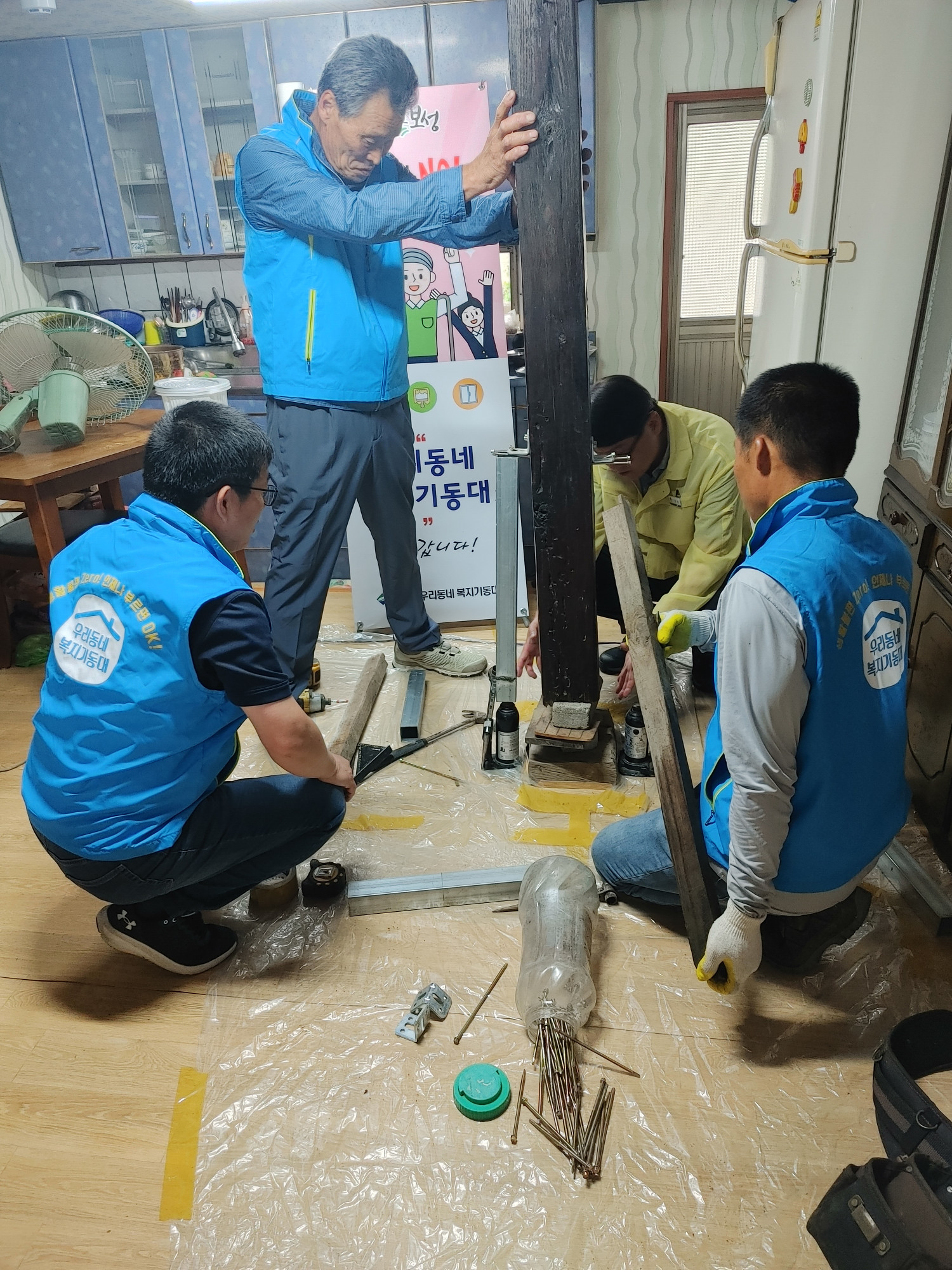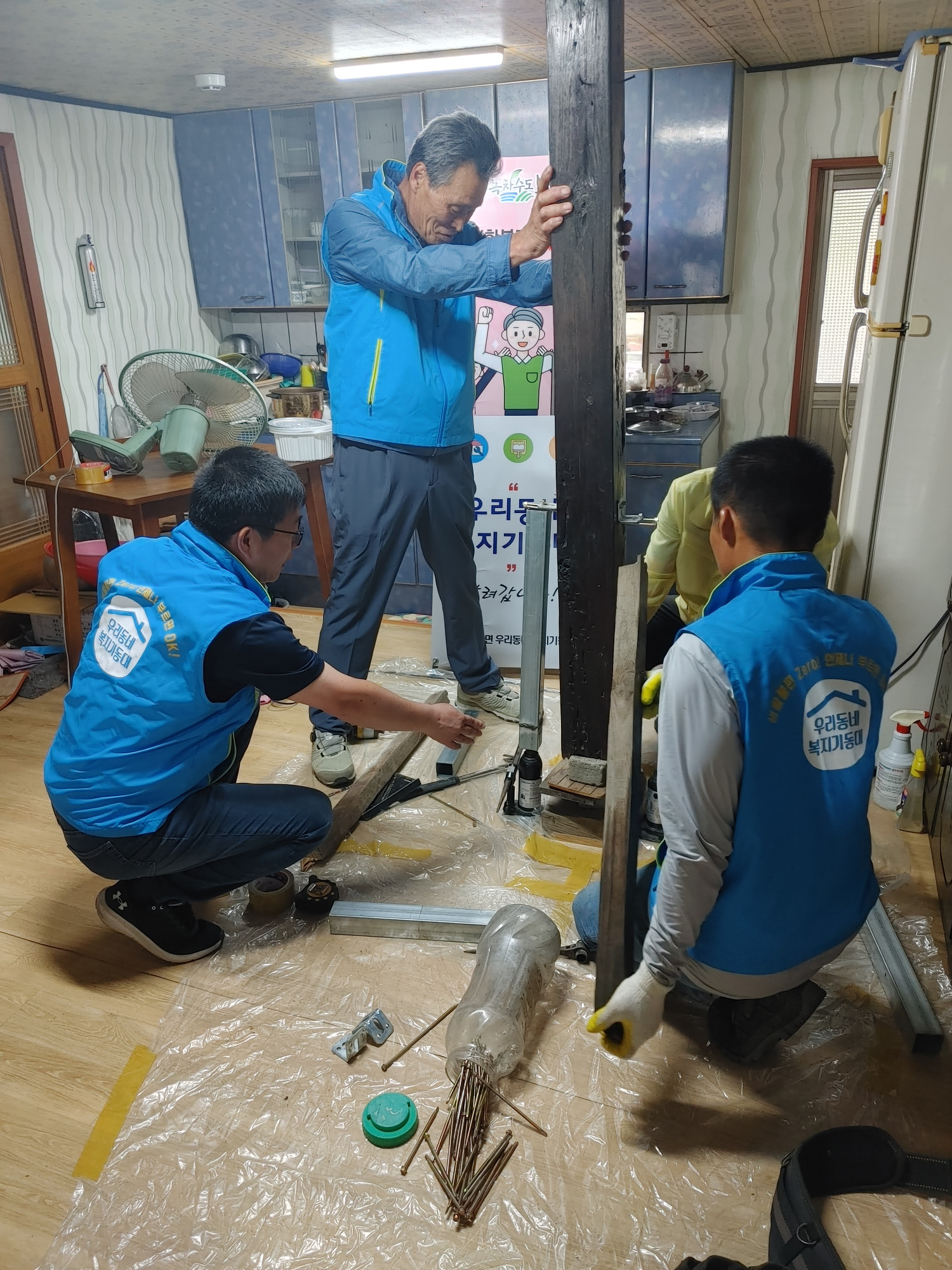 내용: 율어면 우리동네복지기동대는 율어면 고0리 독거어르신 댁에 집내부 기둥이 흔들거려 기동대장님과 함께 가서 기둥을 보수하여 주거내부환경개선에 일조하였다.