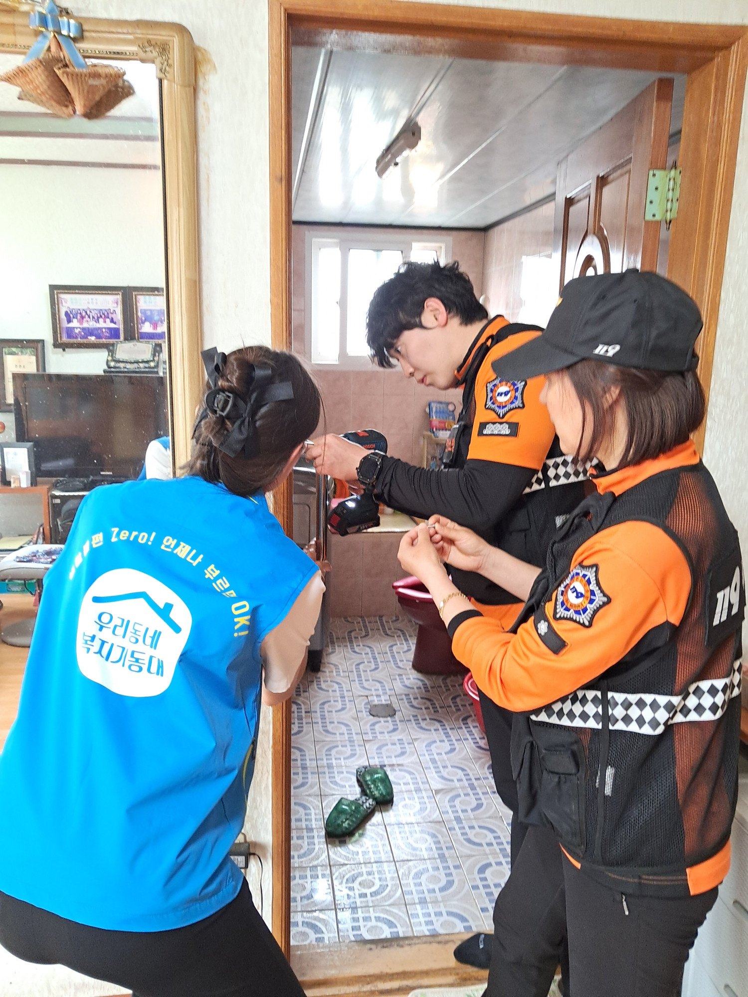 논슬립패드 및 화재경보기 설치, 벌집제거, 기초건강 측정 등