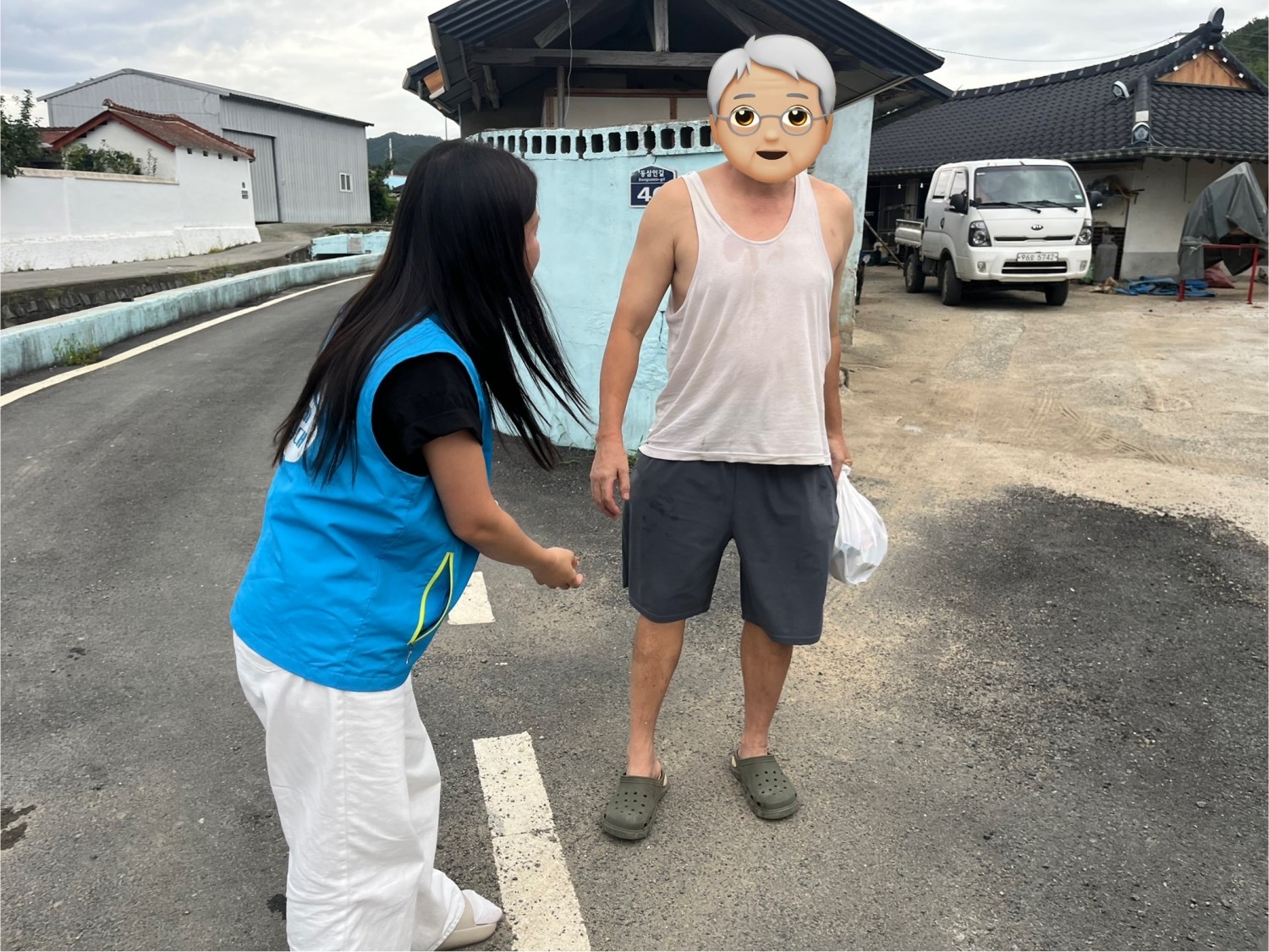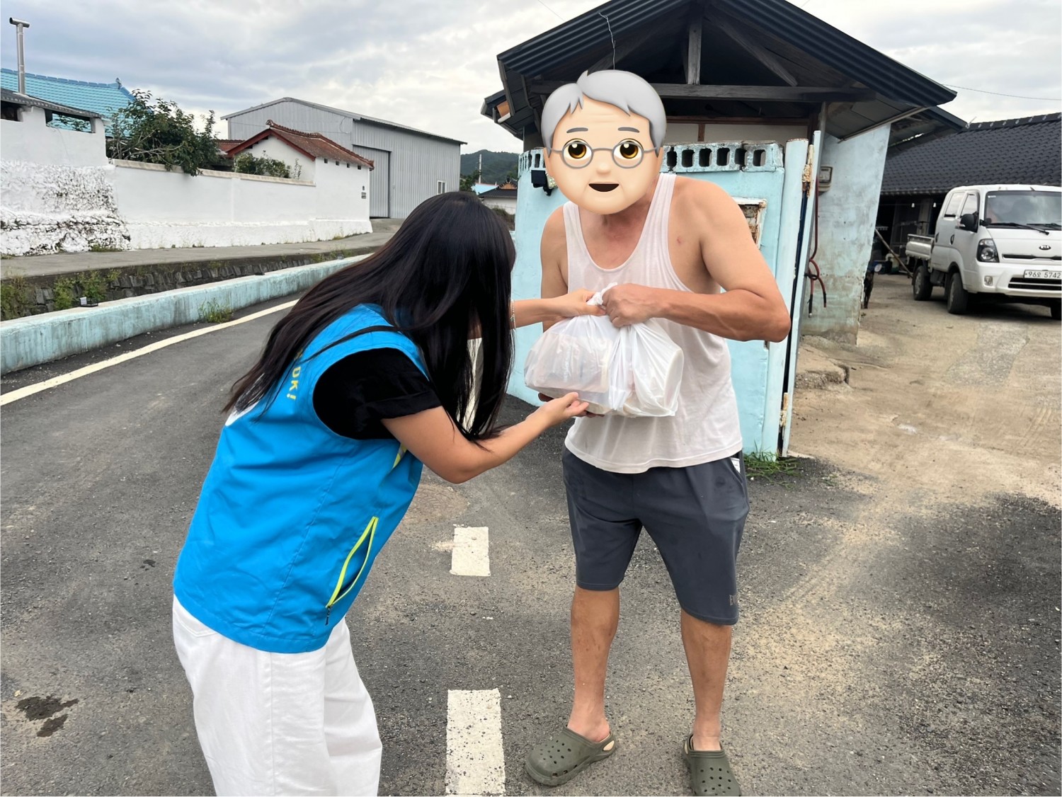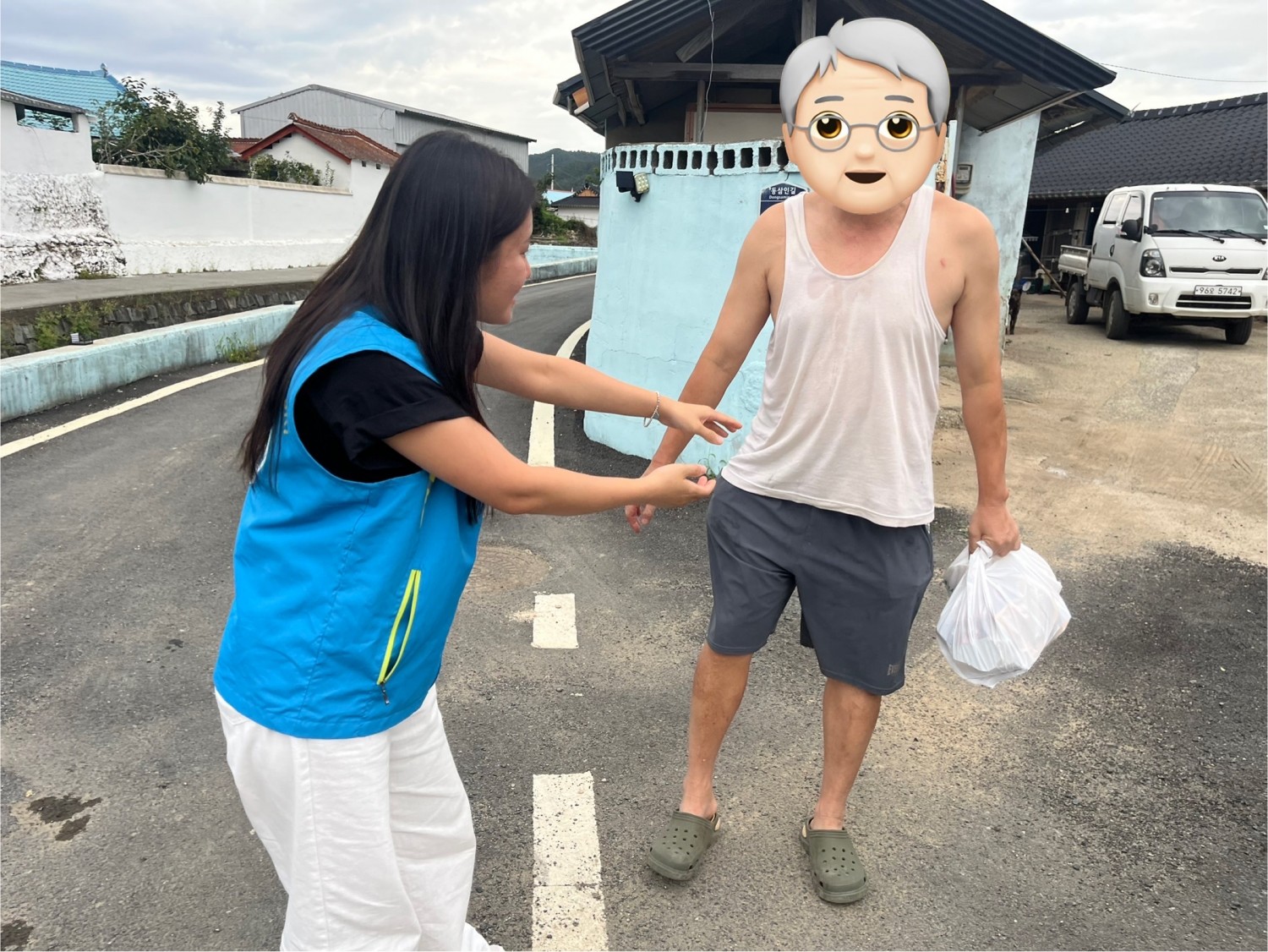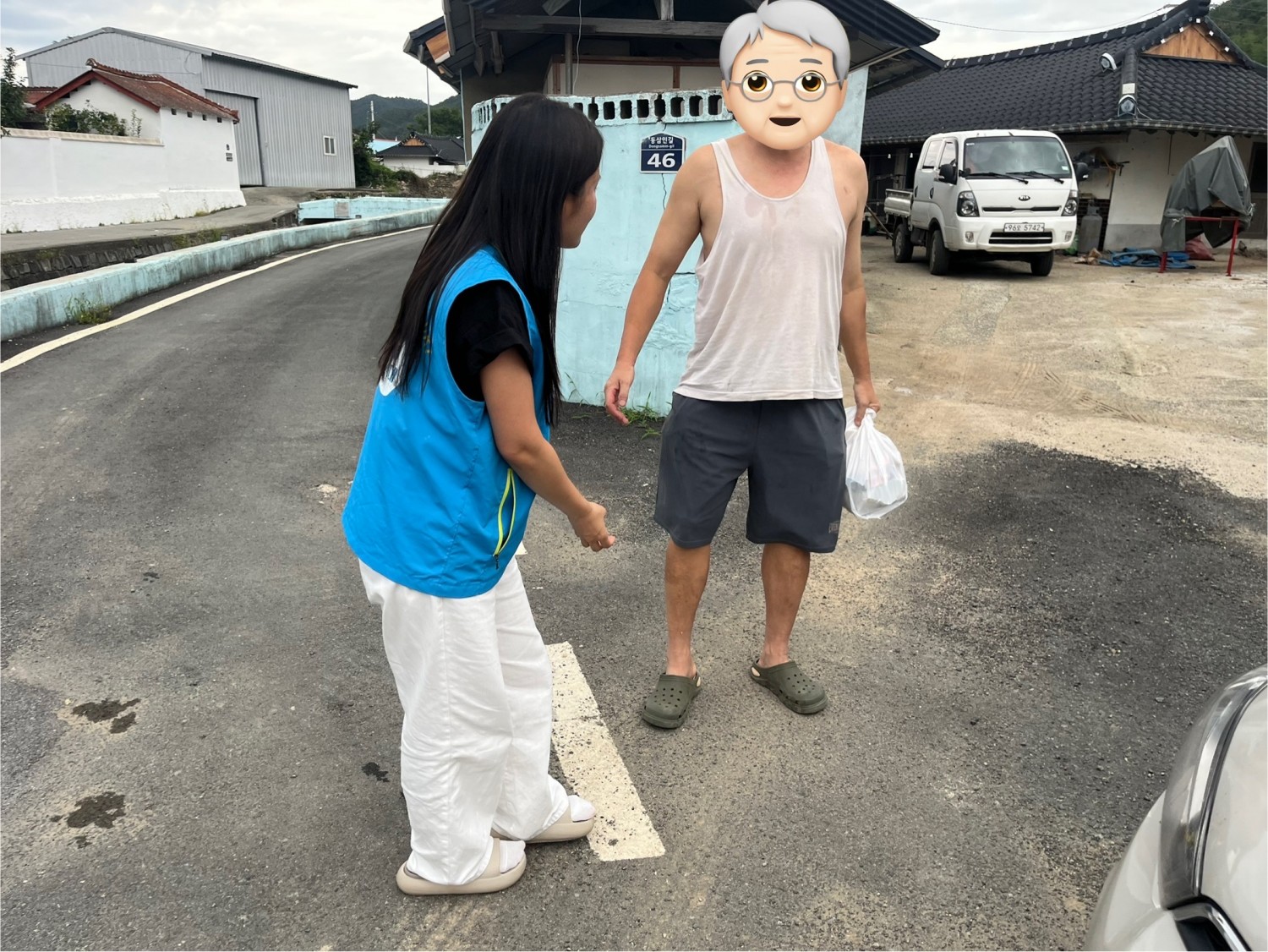 지적장애를 앓고 계신 어르신댁에 방문했습니다. 기탁 음식을 전달하며 식사여부도 확인하고, 건강상태는 괜찮은지, 지원이 필요한 부분이 있는지 확인했습니다.