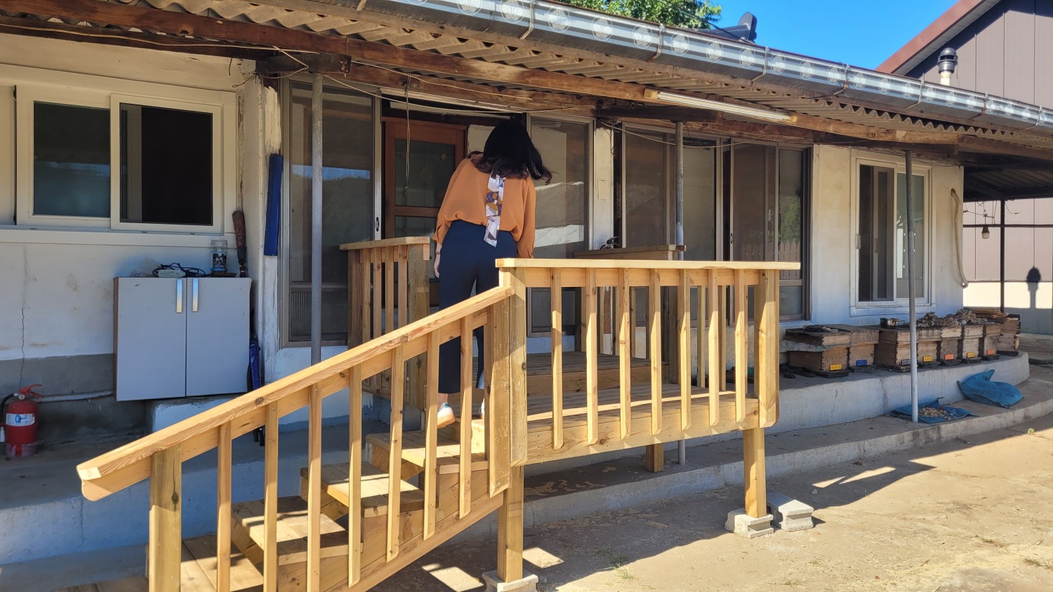 복지기동대가가서 넚은데크와 손잡이를 만들어 주셔서 움직이기가 훨씬 수월해 지셨답니다~~^^