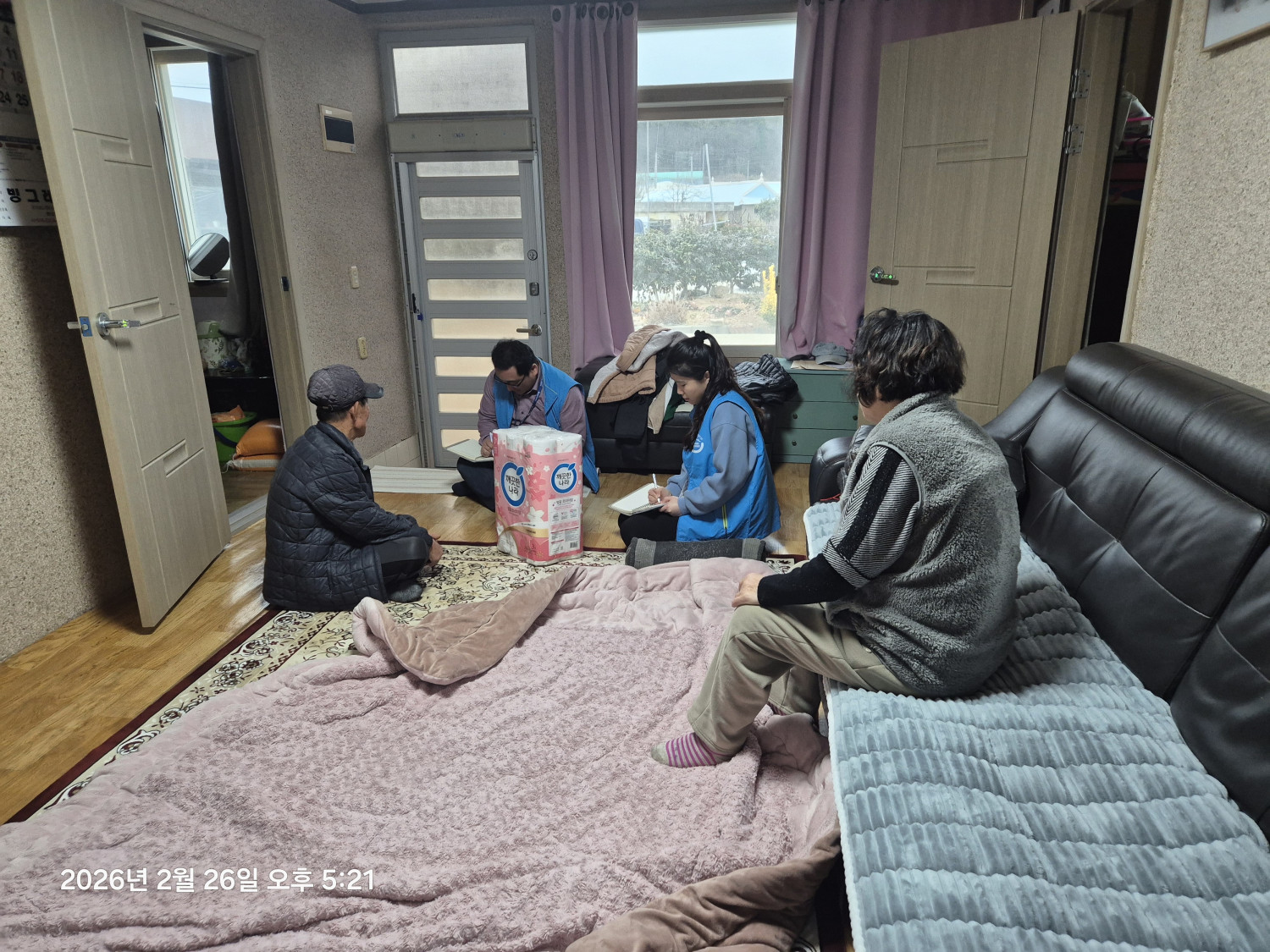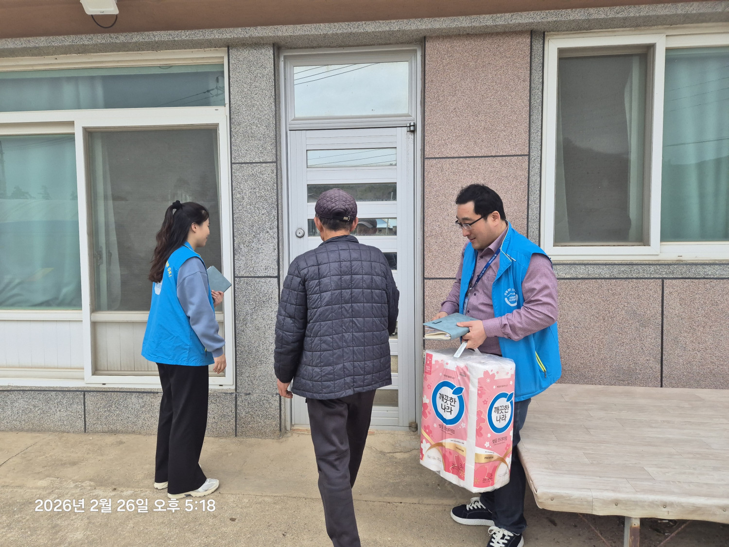 - 생필품(화장지) 전달