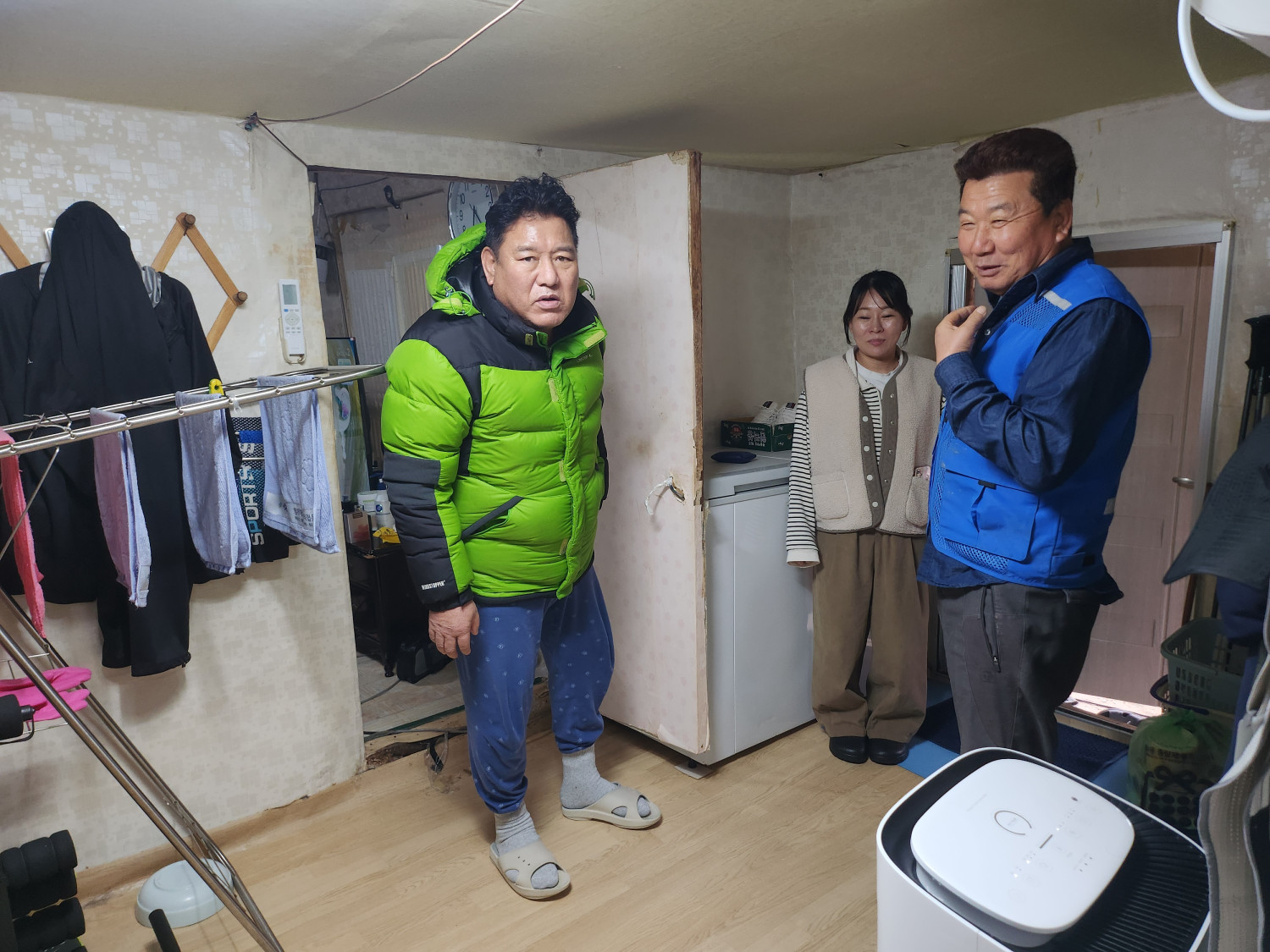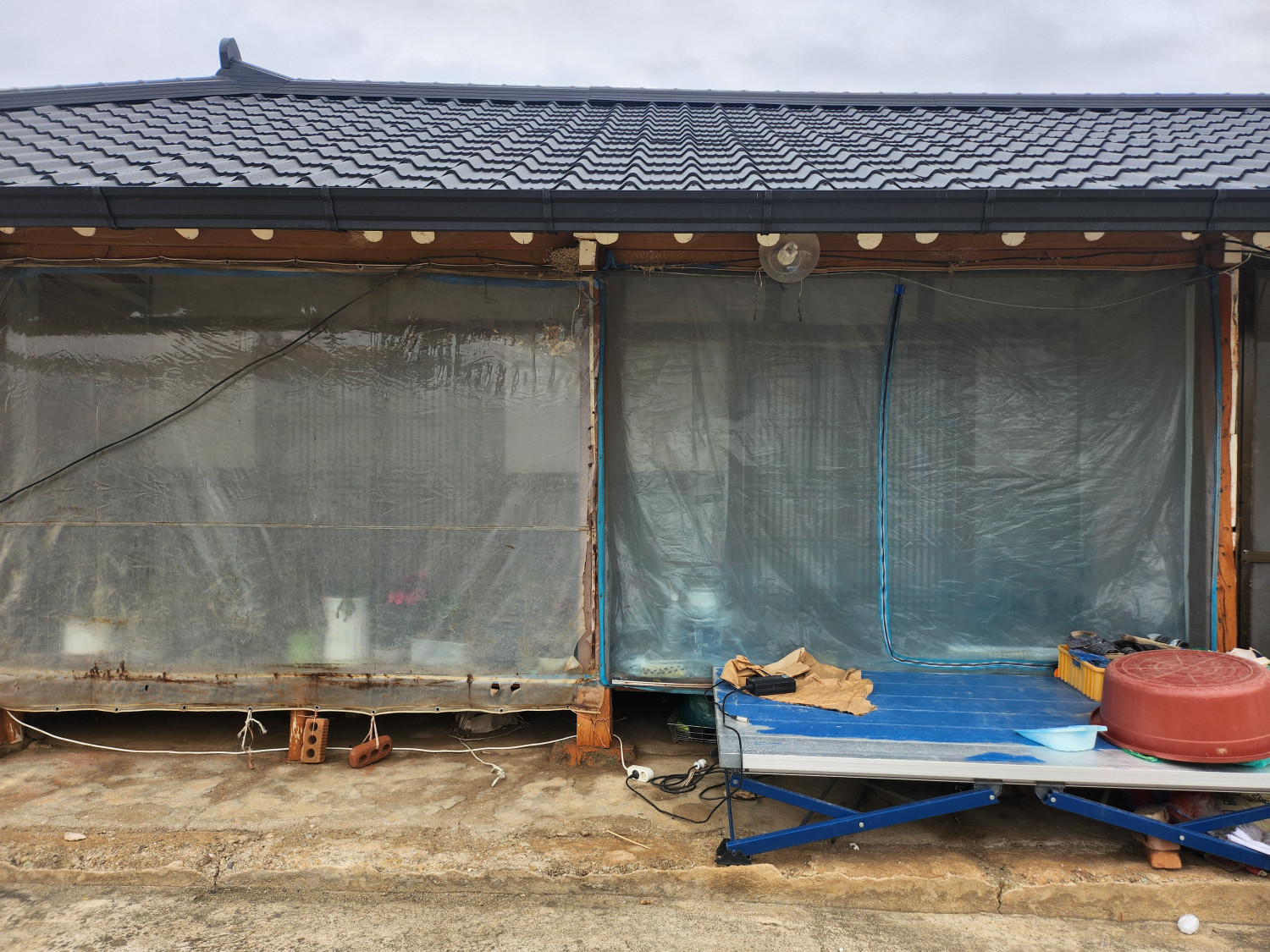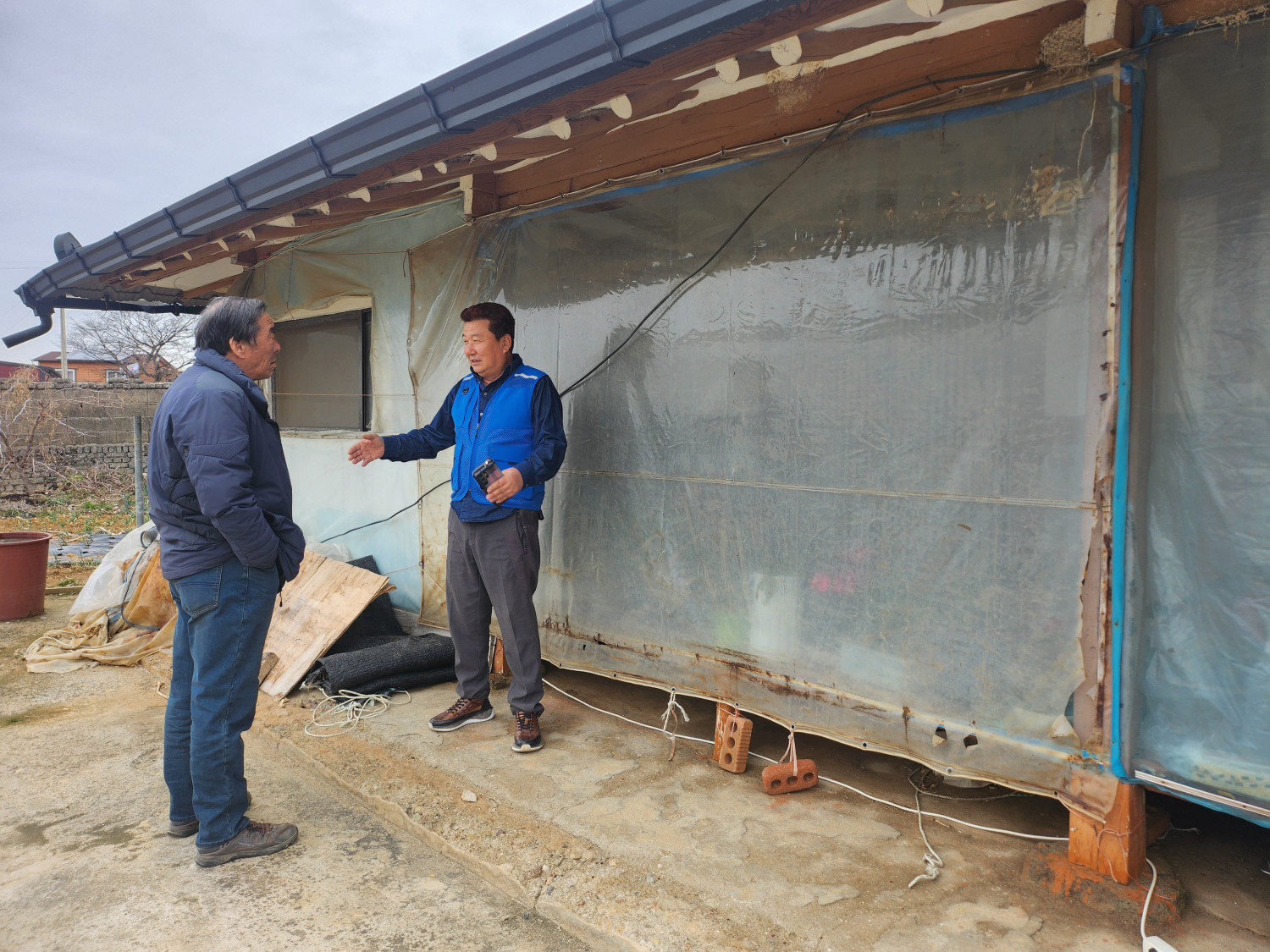 첫번째집은 비가 올때마다 비가 안으로 들어와 임시 방편으로 비닐을 씌워놨다고 합니다. 그 외 보일러 등의 안전은 이상이 없었습니다.