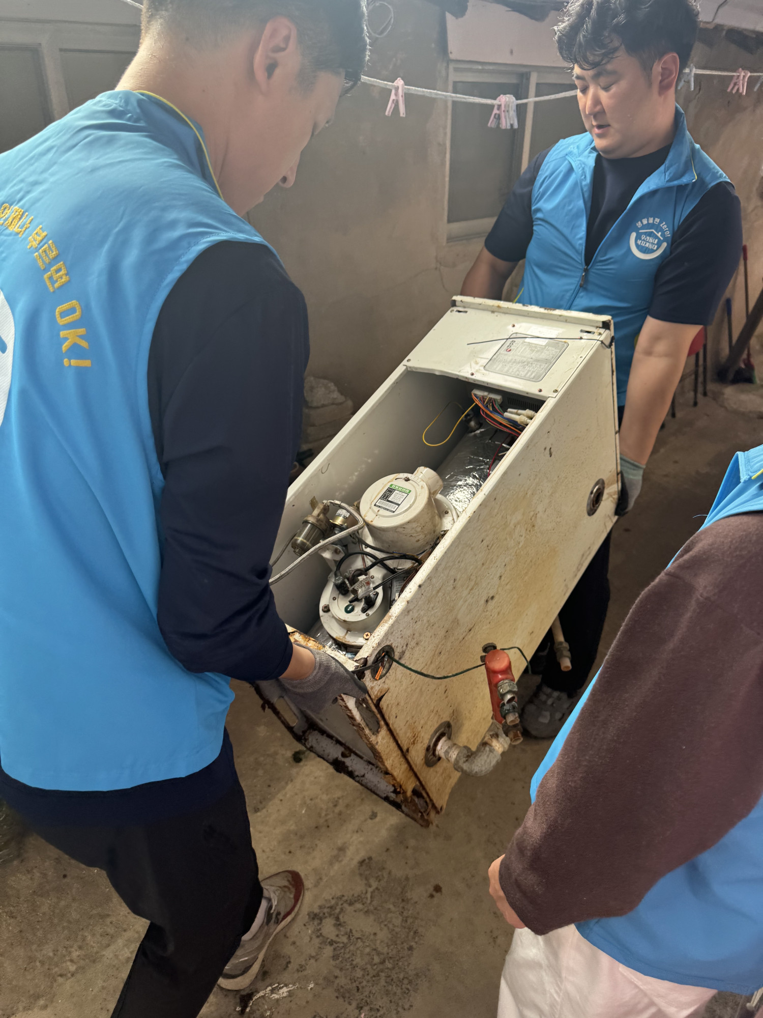 대성동 복지기동대는 좁은 창고안에 설치된 보일러를 철거하고 새 보일러와 기름탱크를 설치하였으며, 배관누수공사를 진행하여 올 겨울을 따뜻하게 보낼 수 있도록 지원하였다.