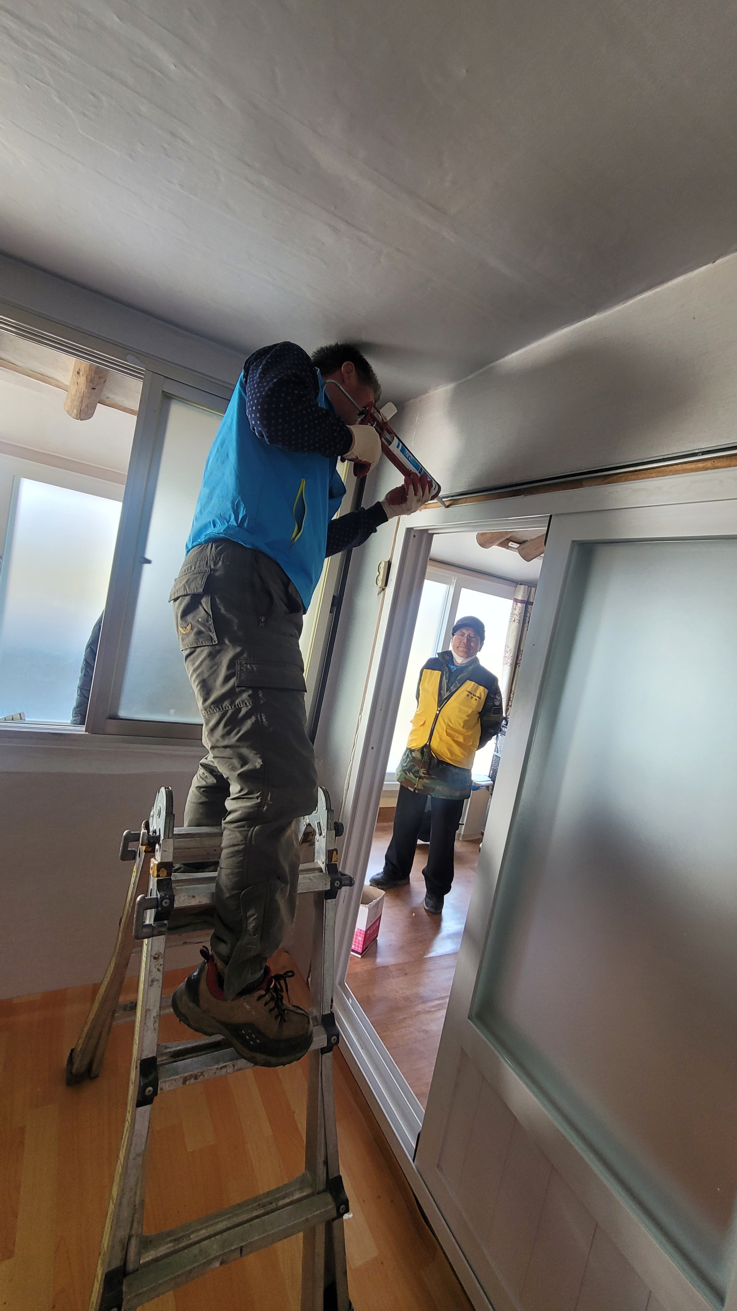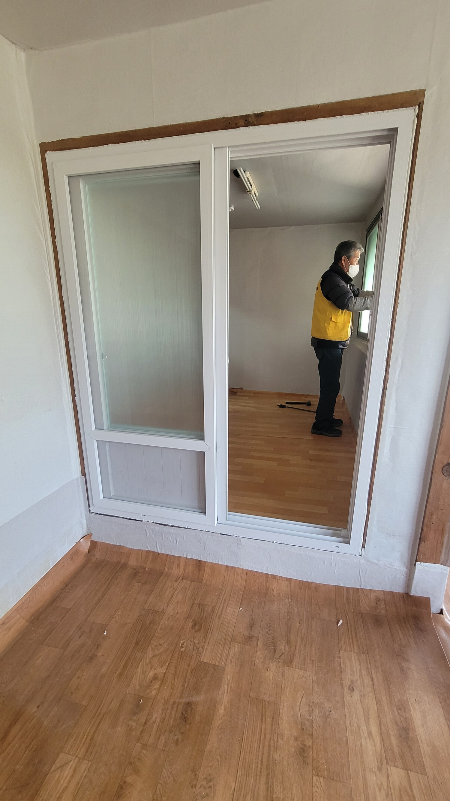 계동마을 어르신 집의 방문 턱 높낮이 조절 공사를 해드렸습니다?