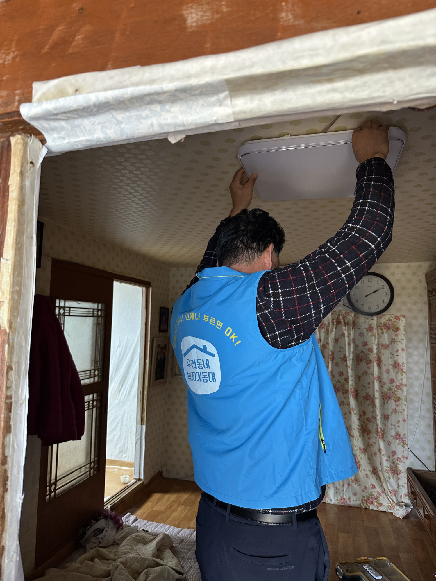 안부확인을 시작으로 노후된 전등을 교체하고, 몸이 불편한 어르신을 위해 집안 정리를 도와드렸습니다.