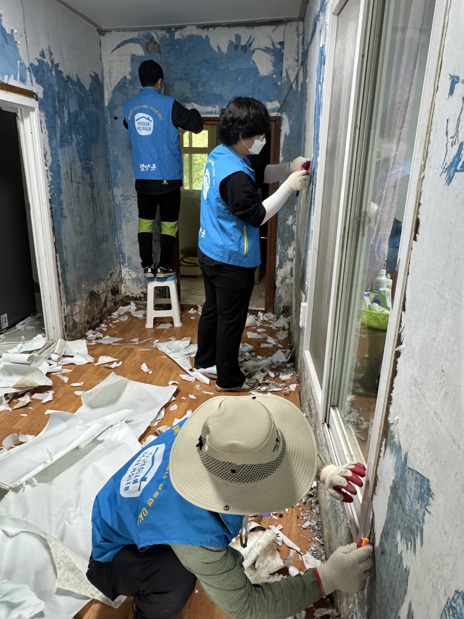 실내 곰팡이 방수페인트 도색 작업, 전기 화재 안전점검, 영양죽 전달