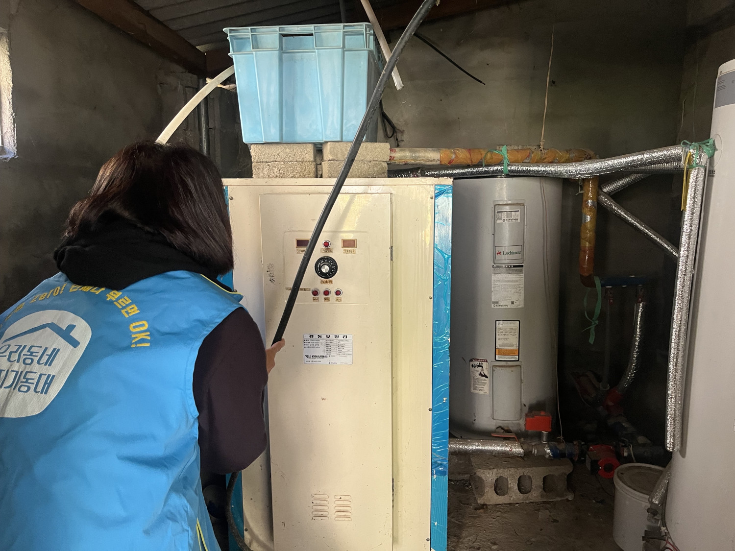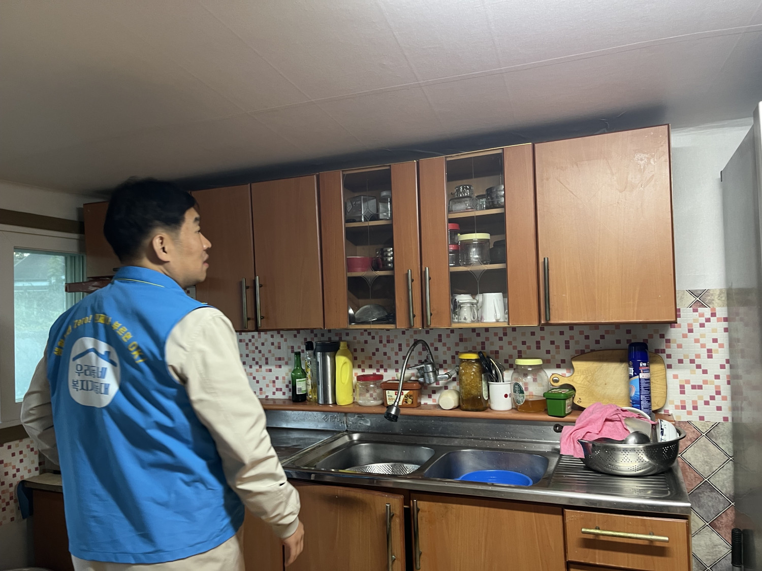 주거환경개선 서비스를 원하시는 기초수급 대상자댁에 다녀왔습니다. 싱크대 교체를 원하셨어요. 20년 이상 사용하셔서 그런지 군데군데 삭은데도 많고 곰팡이도 많았습니다. 게다가 문도 낡아서 닫히지 않았어요. 현장조사 겸 방문했다가 겨울철이라 보일러 점검도 실시했습니다 😊👍