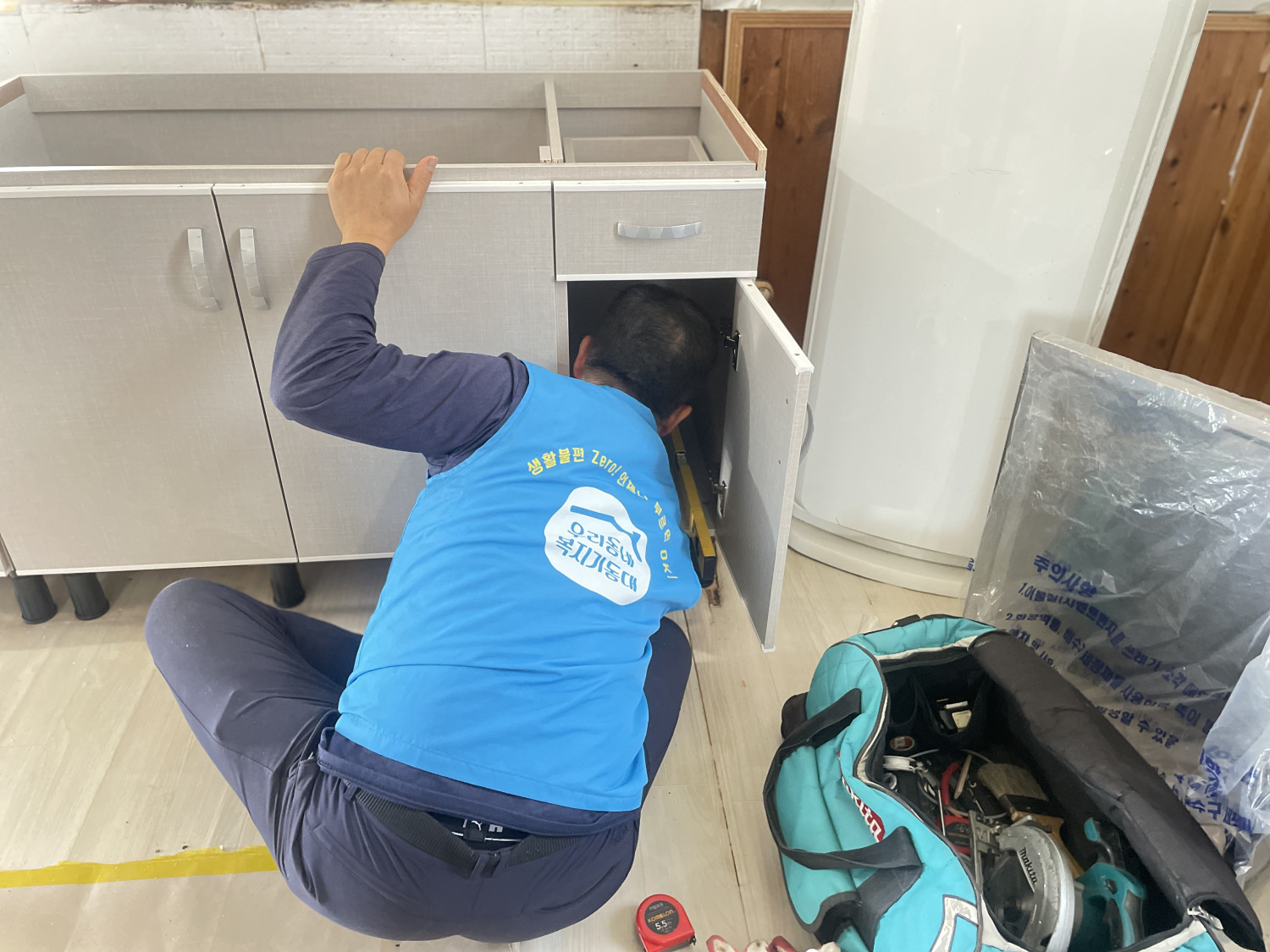 오래된 벽지와 낡은 싱크대로 생활하시던 어르신께 보다 쾌적하고 안전한 공간을 선물해드리고자 정성껏 작업을 진행했습니다.