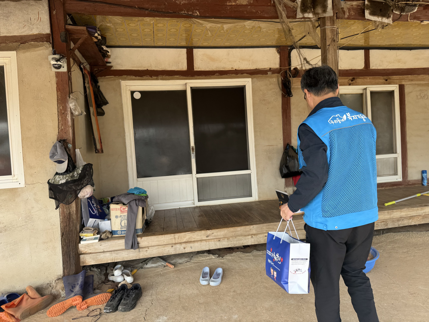 새마을 부녀회 회원분들이 정성껏 준비하신 밑반찬들을 들고, 우리동네 복지기동대 대원들이 출동했습니다! 홀로 계신 어르신 다섯 가구를 방문해 반찬을 전해드리고, 건강과 안부도 꼼꼼히 살피고 왔어요.