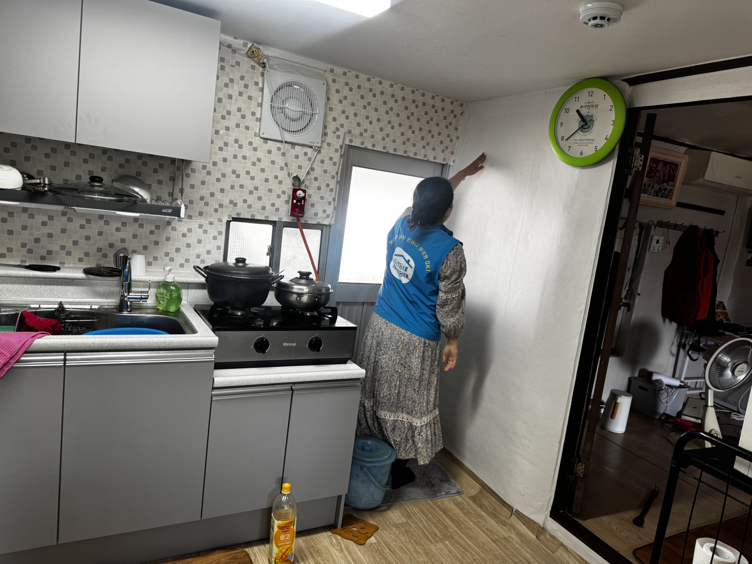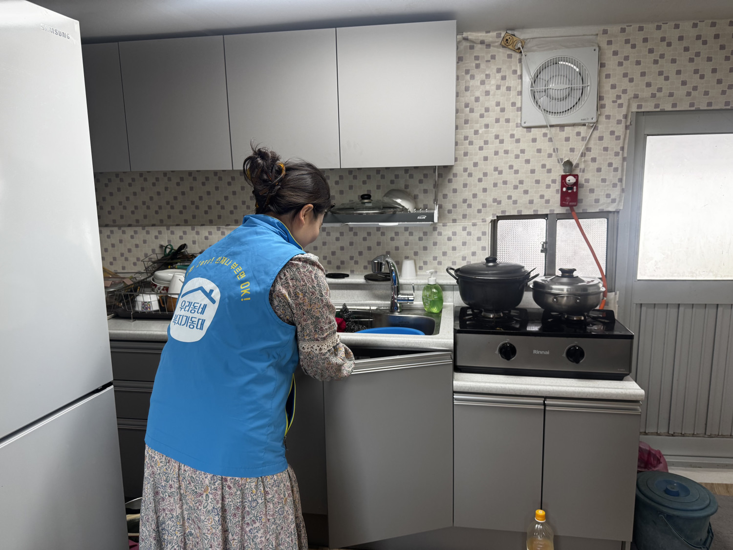 우리동네복지기동대는 생활불편개선사업을 통해 싱크대 교체 및 도배·장판 교체를 완료한 가구를 대상으로 현장 확인 및 만족도 확인을 위해 방문하였다.