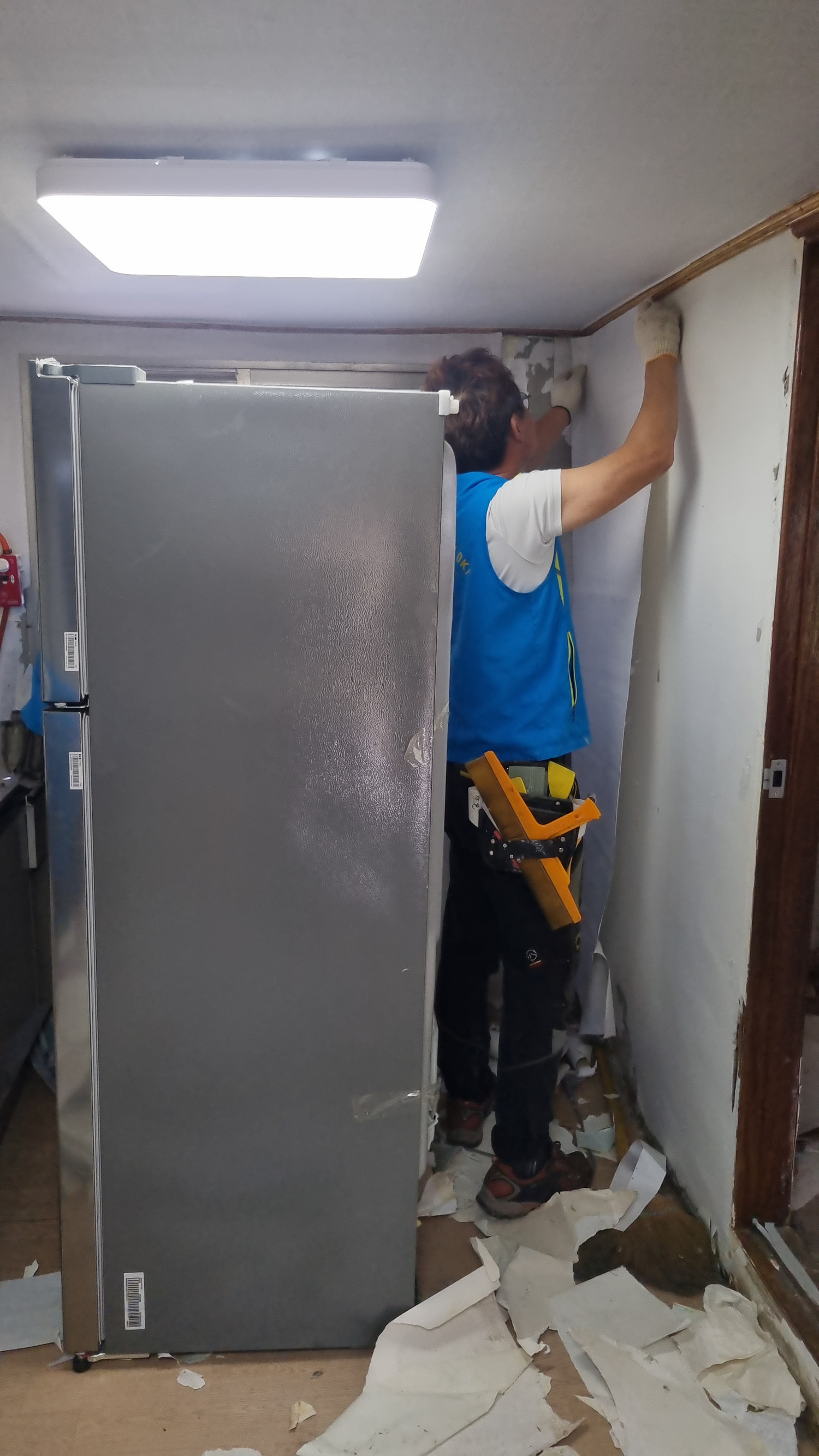 - 주택 내 주방 및 안방의 도배, 장판 부분의 공사가 완료되었습니다