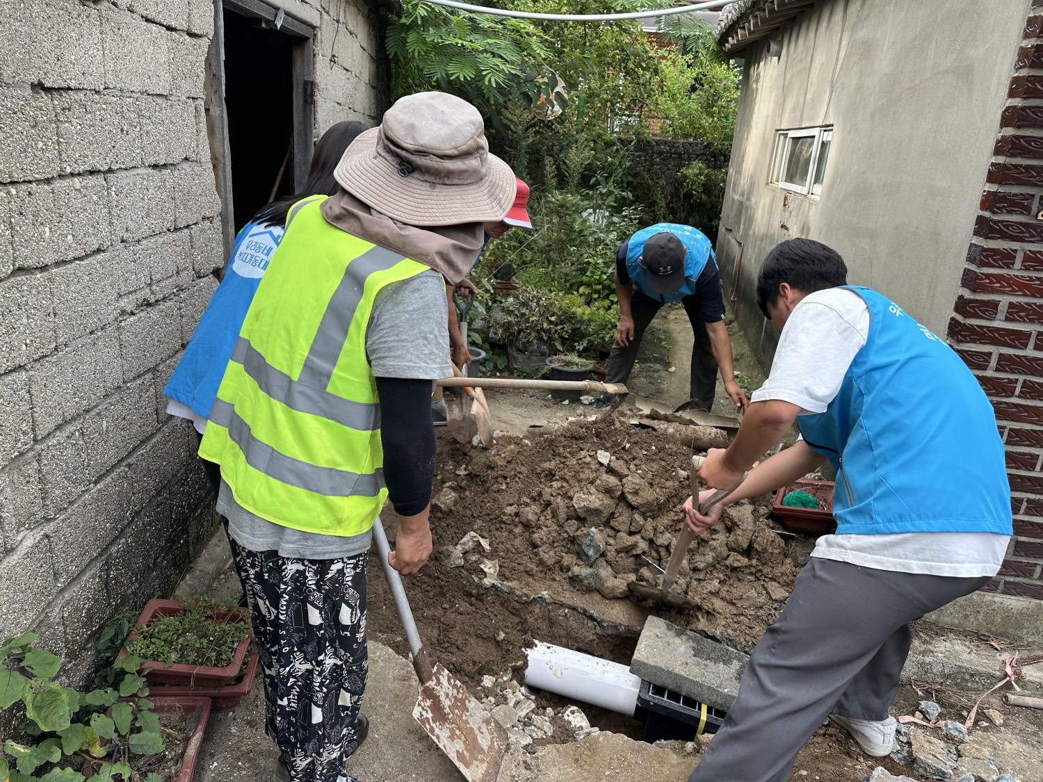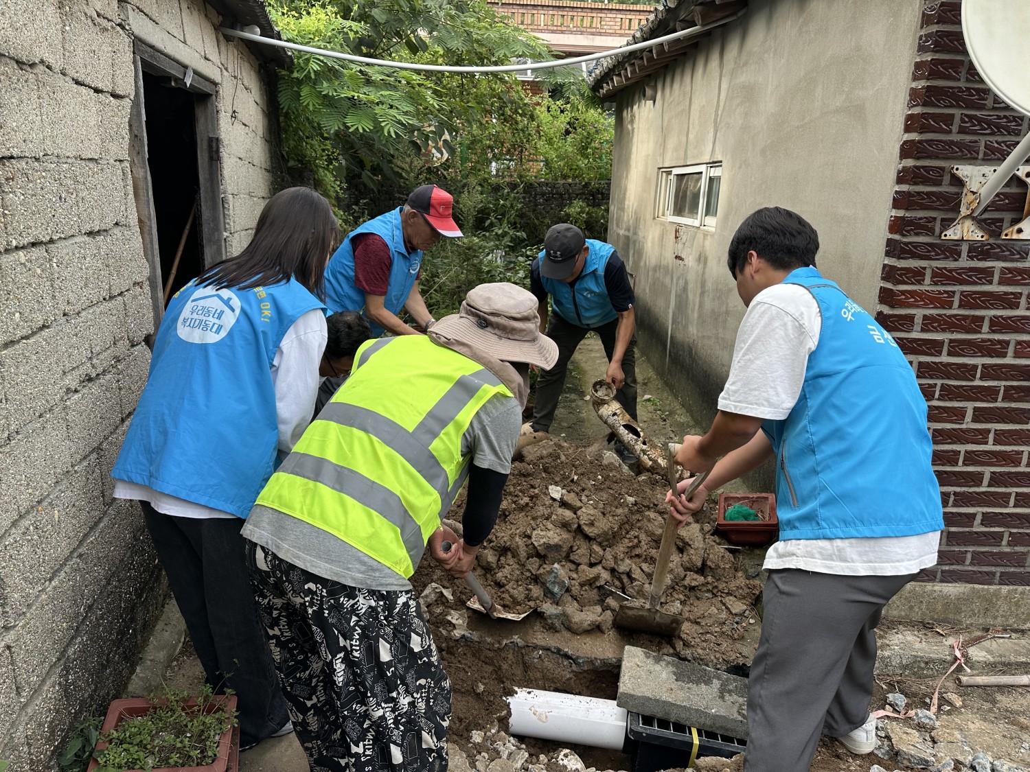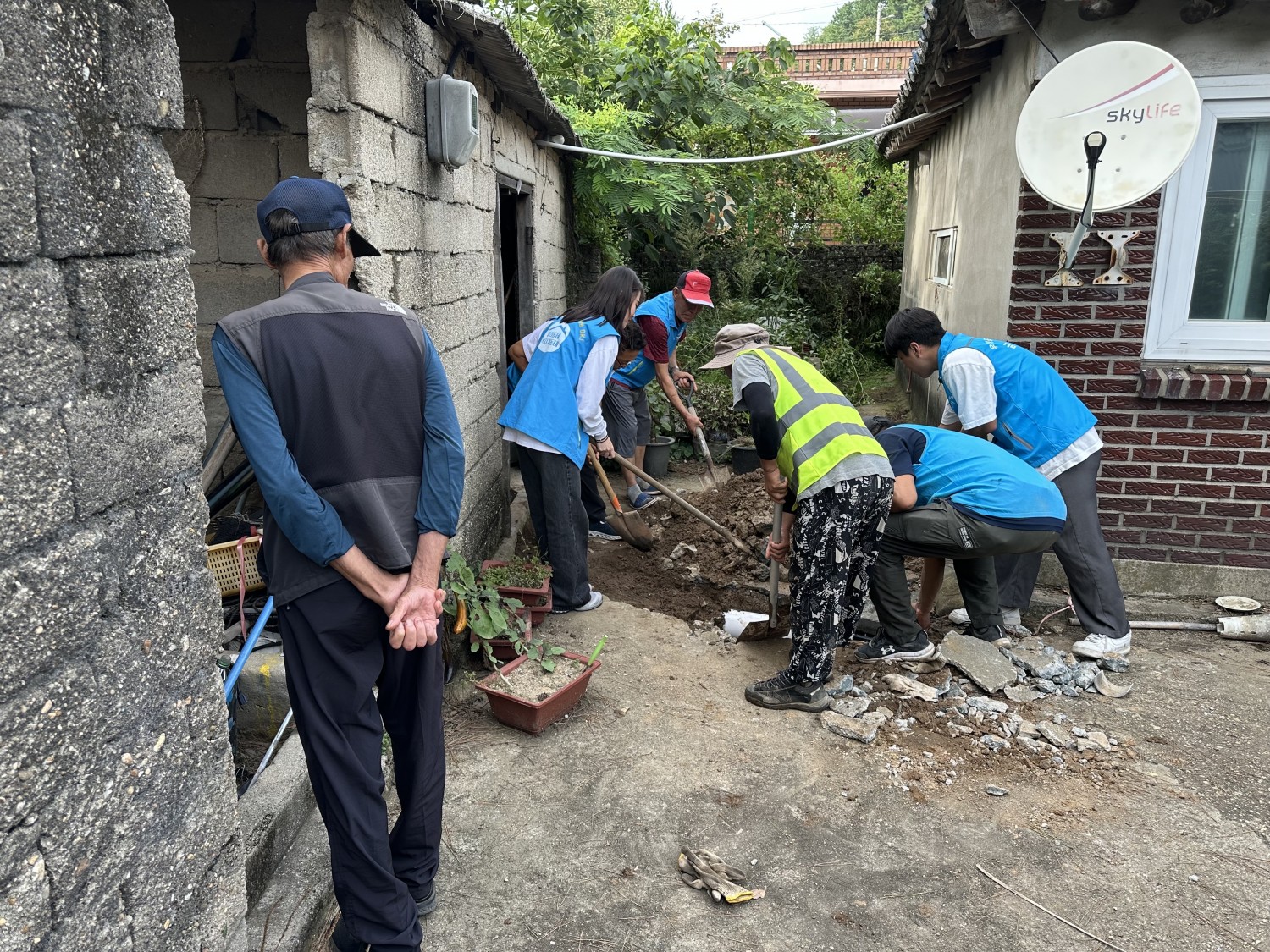 안녕하세요! 오늘도 저희 금산면 복지기동대가 마을 곳곳을 돌아다니며 생활 불편 현장을 개선하기 위해 노력했습니다!!? 이번에 방문한 곳은 며칠 전 마당 배수구 막힘으로 인해 비가 올 때마다 마당에 물이 차오르는 어르신 댁입니다!! 비가 올 때마다 물이 차버려 어려움을 겪고 계시는 어르신을 위해 빛보다 빠르게 저희 금산면 복지기동대는 출동하였답니다ㅎㅎ?? 아직은 덥고 꿉꿉한 날씨지만 어르신을 위해 열심히 배수구 막힘을 해결하기 위한 작업을 했습니당? 작업을 할 때엔 너무 덥고 힘들었지만 작업이 진행되는 과정을 보니 뿌듯함을 느끼며 보람찬 하루가 되었음을 느꼈습니다? 앞으로 며칠간 더 작업을 해야하겠지만!! 앞으로도 더 열심히 힘쓰는 금산면 복지기동대가 되기위해 노력하겠습니다???