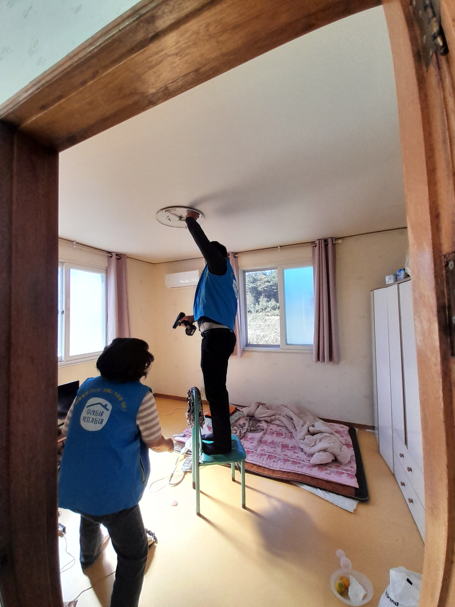 이날 주거개선에는 형편이 어려운 홀로 사는 어르신 가정에 안전하고 쾌적한 주거공간을 LED등과 안전바를 설치하였고, 집 내.외부에 오랫동안 쌓아둔 생활폐기물도 깨끗하게 치워 온기나눔 실천에 앞장섰다.