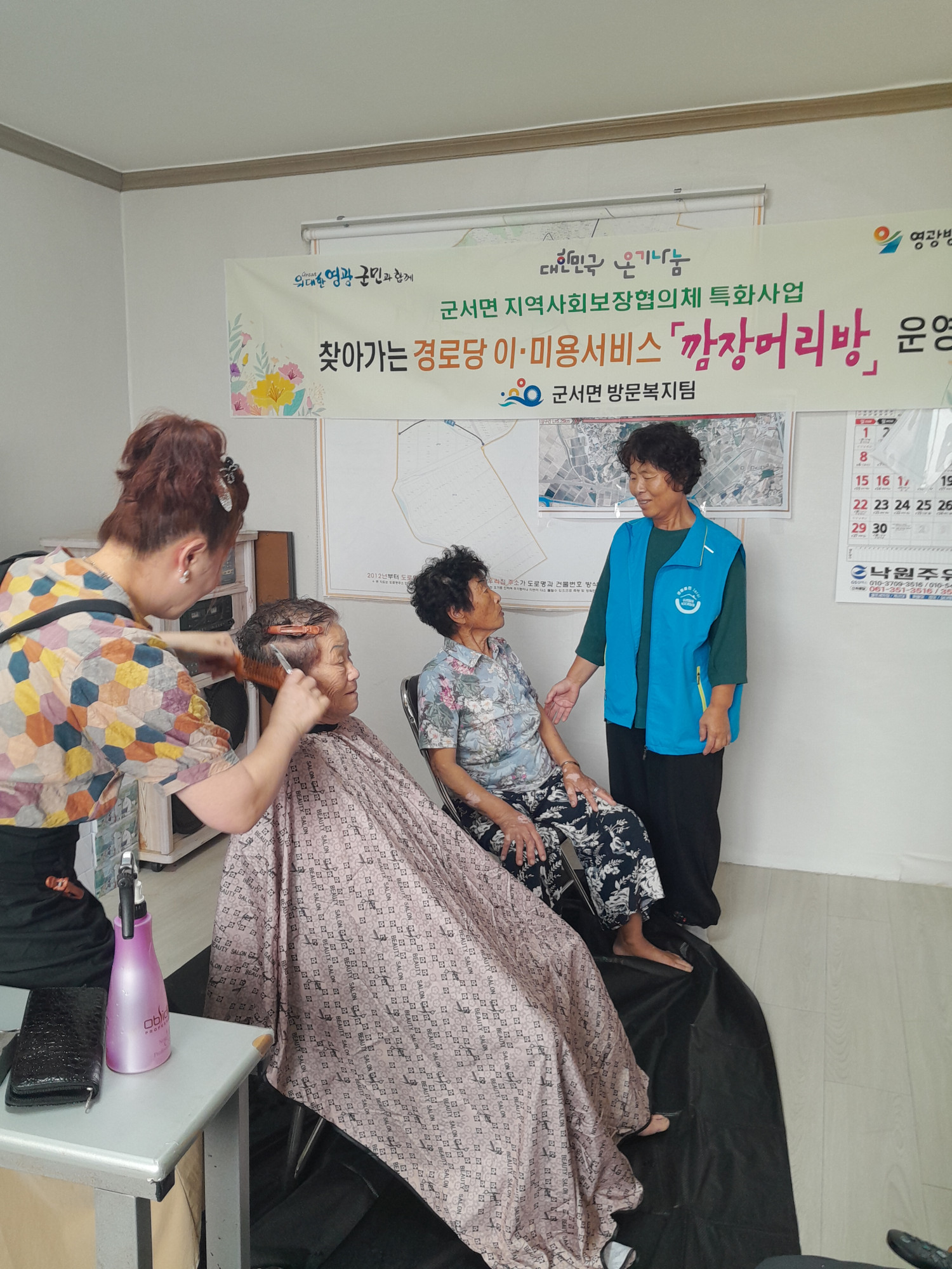 영광군 군서면 우리동네 복지기동대에서는 지난 9월 26일 취약계층 어르신 15명을 대상으로 이.미용 서비스를 위한 깜장머리방을 운영 지원했다.
