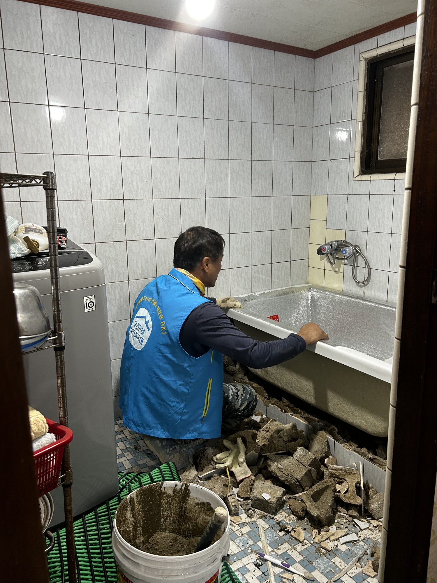 화장실이 좁아 욕조에서 목욕을 하시는 어르신은 욕조 바닥이 깨져 낙상 위험이 높고 부상의 위험이 있어 욕조 교체 시행함