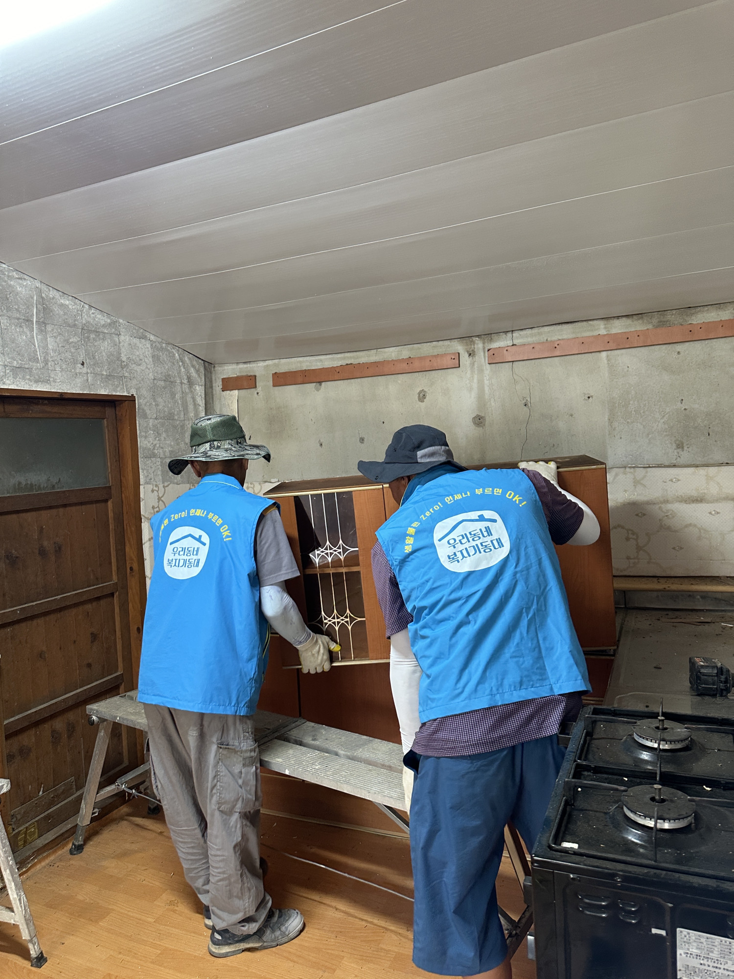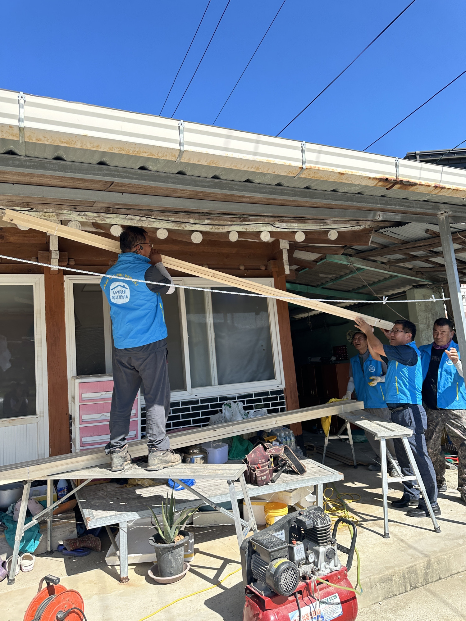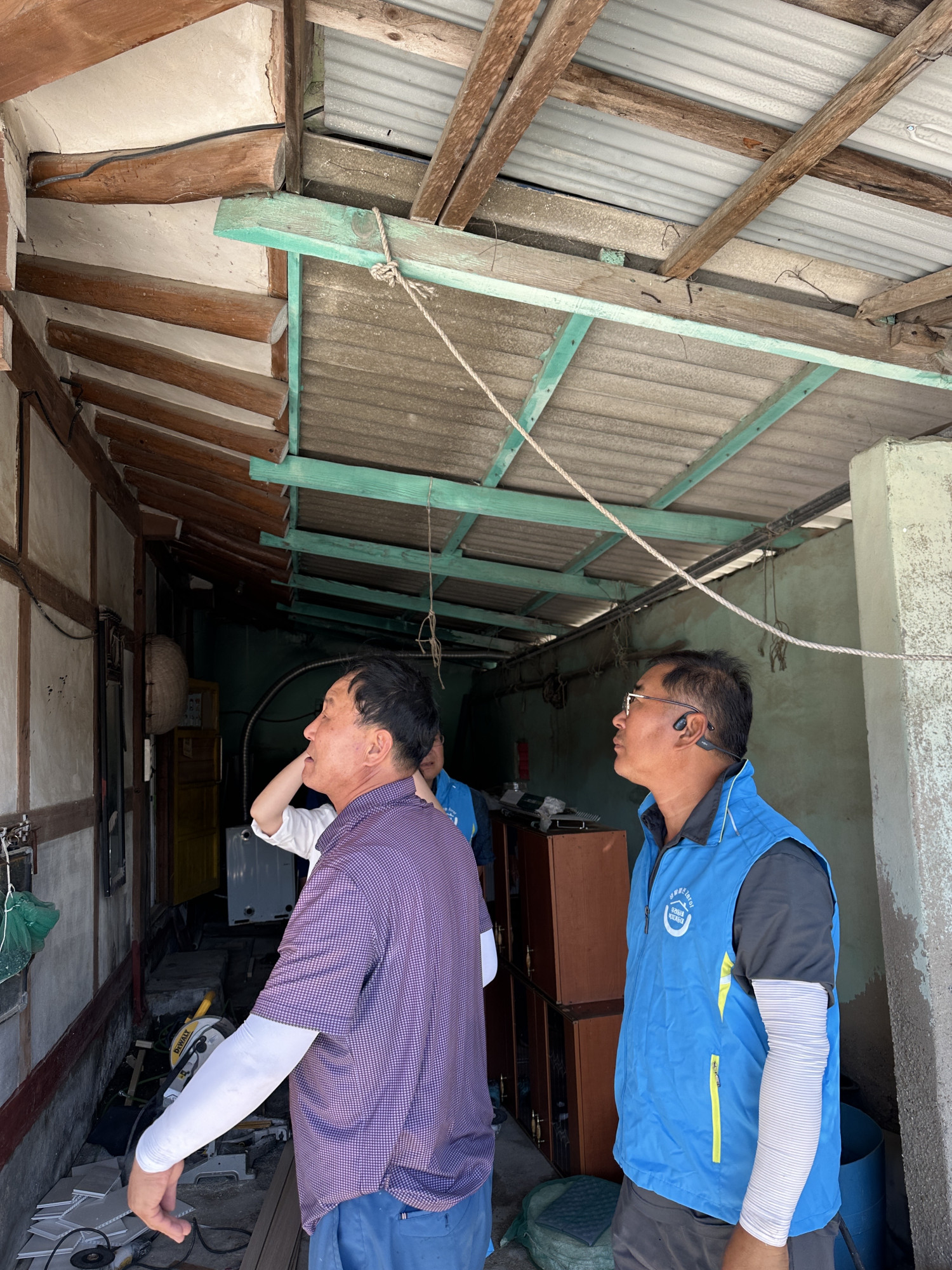 집중호우 피해가구를 방문해 내려앉은 천장과 처마를 보수하였습니다.