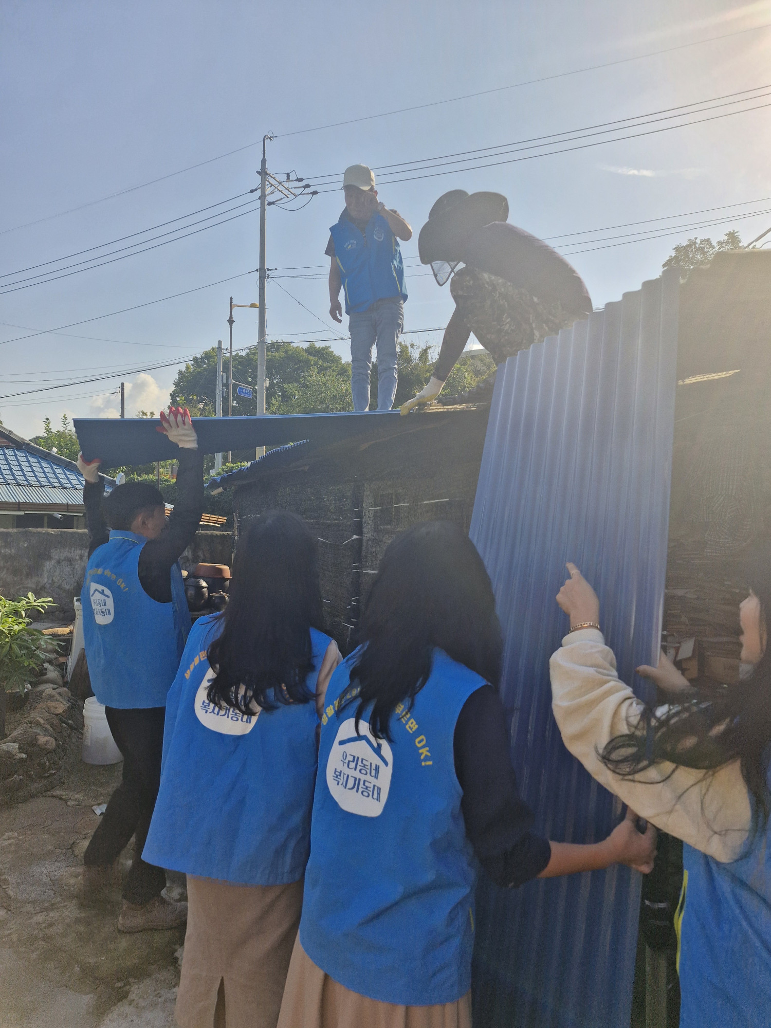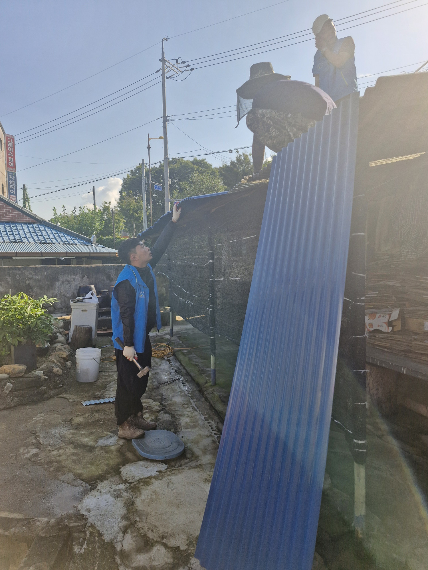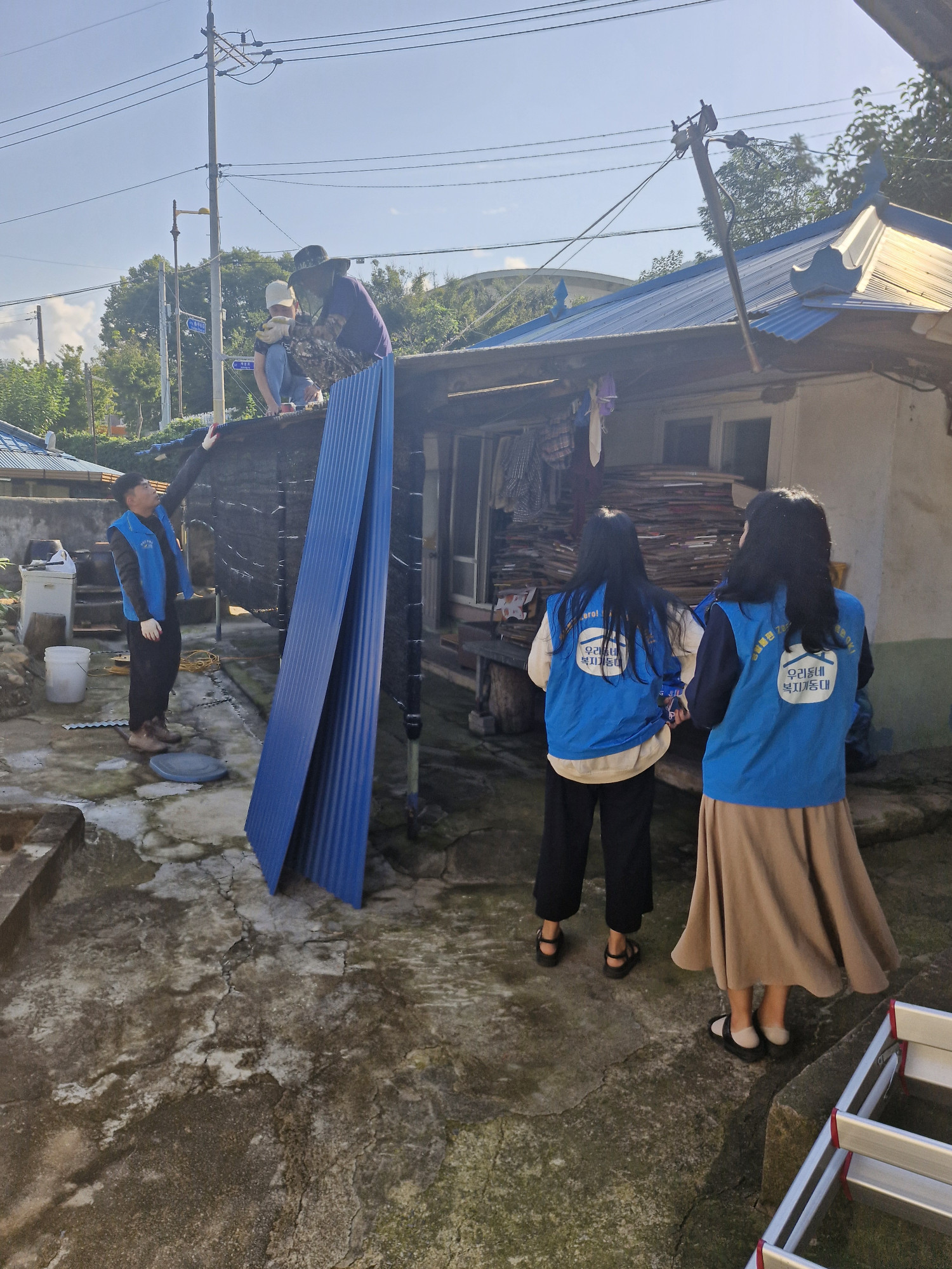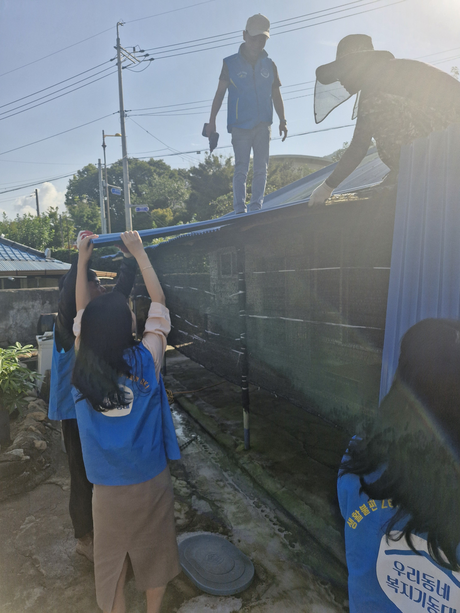 9, 26  장성읍 충무동 수급자가구에 복지기동대 참여  폭우로 인한 처마누수을 해결했다
