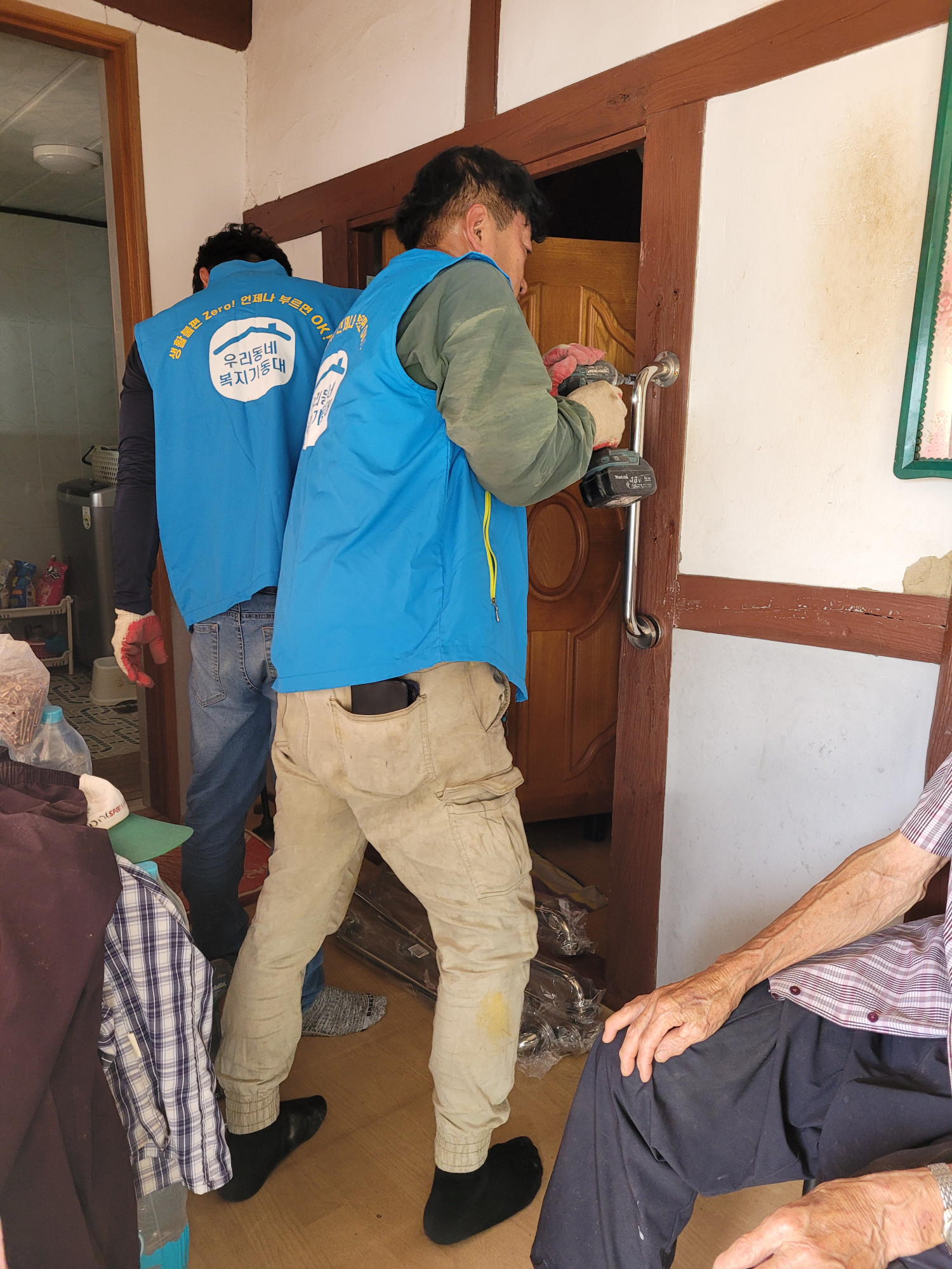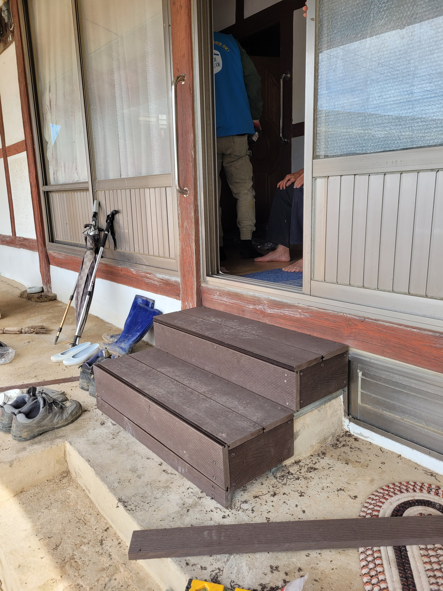 거동이 불편한 어르신을 위해 집안에 안전손잡이 설치하고 높은토방에 계단을 설치하였습니다