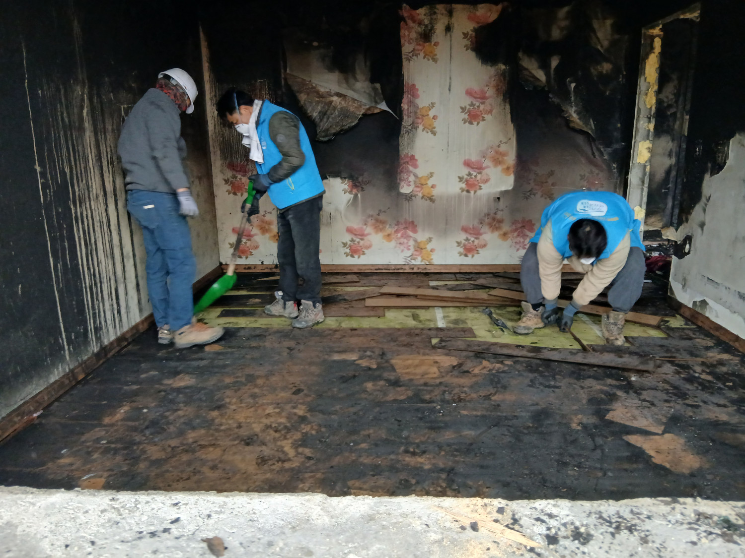 2월 21일에 화재가 발생해 집 내부가 모두 전소가 된 가구를 찾아