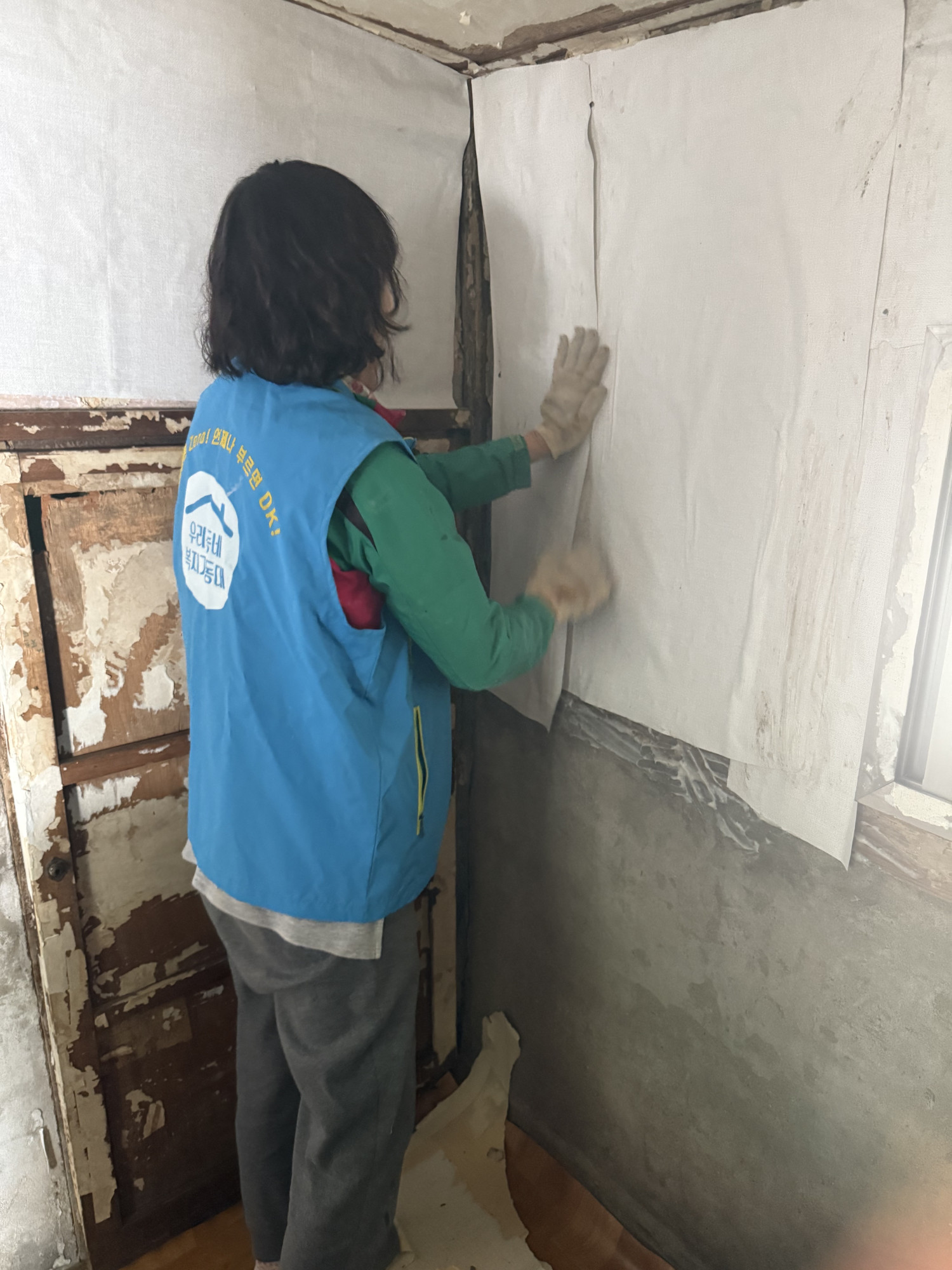 - 위기 상황 : 오래된 흙집이라 벽지가 훼손돼있고 부엌문 교체 필요