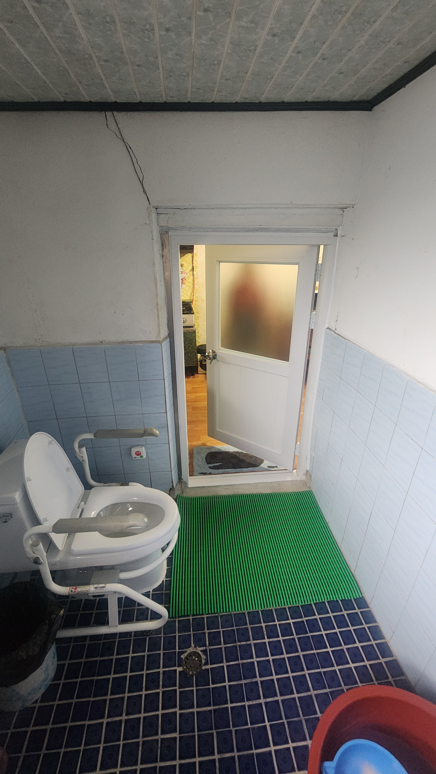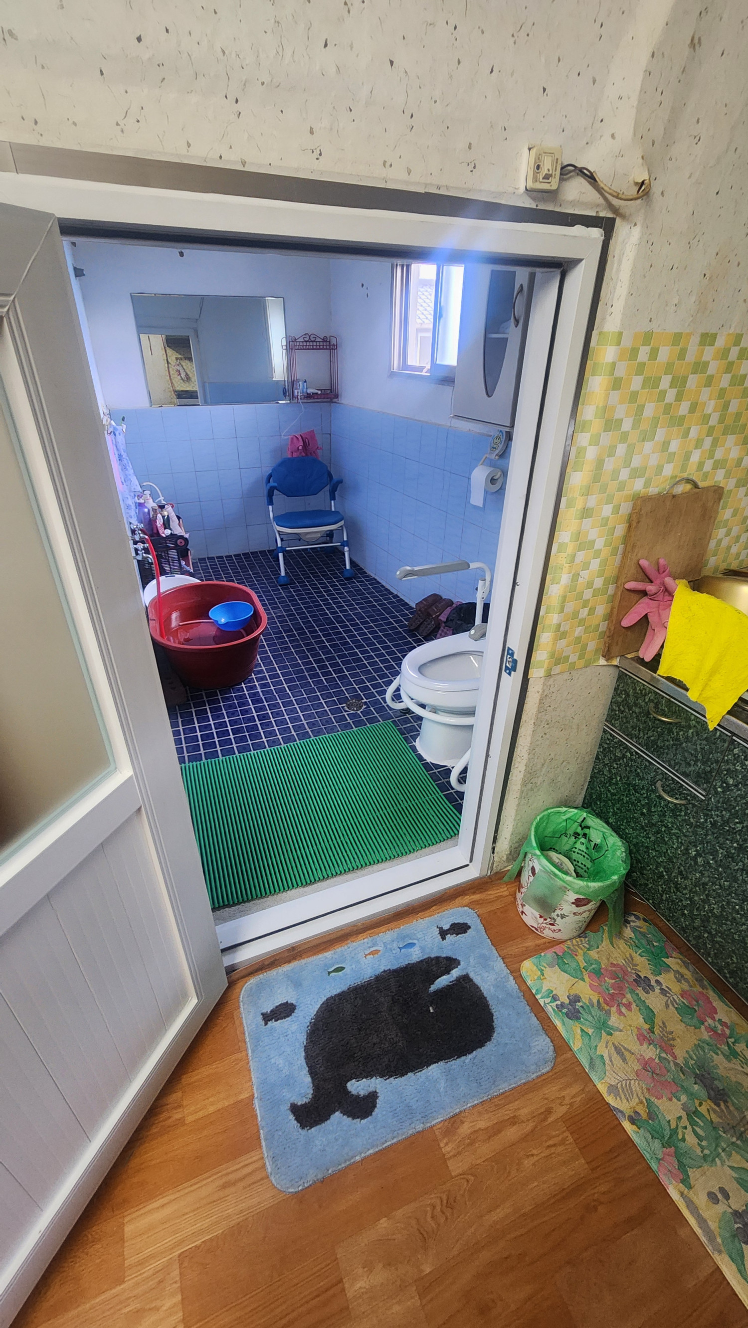 ○ 내용 : 무릎관절이 안 좋아 이동 시 앉은 상태로 기어 다녀 화장실 이용할 때 문턱이 있어 애로사항이 많아 복지기동대에서 현장을 확인 후 긴급하게 문턱 제거, 좌변기 높이 낮추기등 공사를 실시하였다