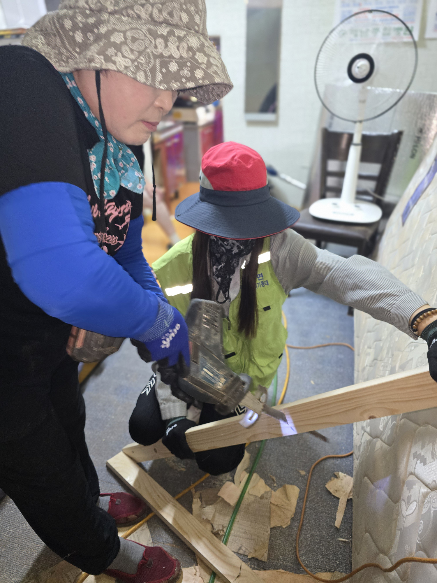 지원내용: 바람이 불면 집천장이 펄럭여서 불안해하시는 독거노인가구에 지붕 및 천장을 단단하게 보수해 안전하게 생활할 수 있도록 해 드렸습니다.