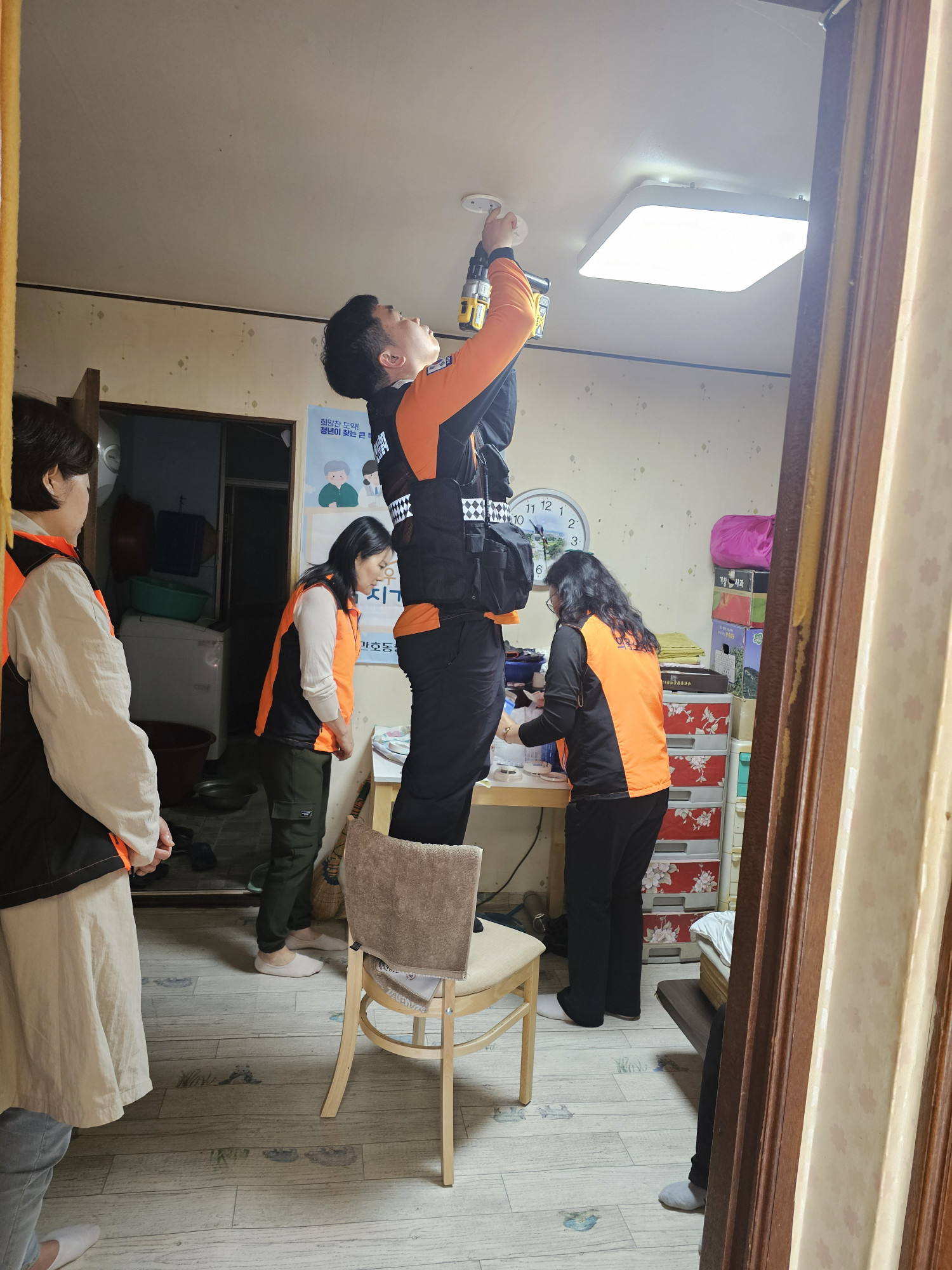 목포소방서 119생활안전순찰대와 의용소방대에서 타이머콕 설치, 화재경보기 교체, 소화기분배 및 사용법 설명, 화재안전점검 등 주거환경개선활동을 동시 진행했습니다.