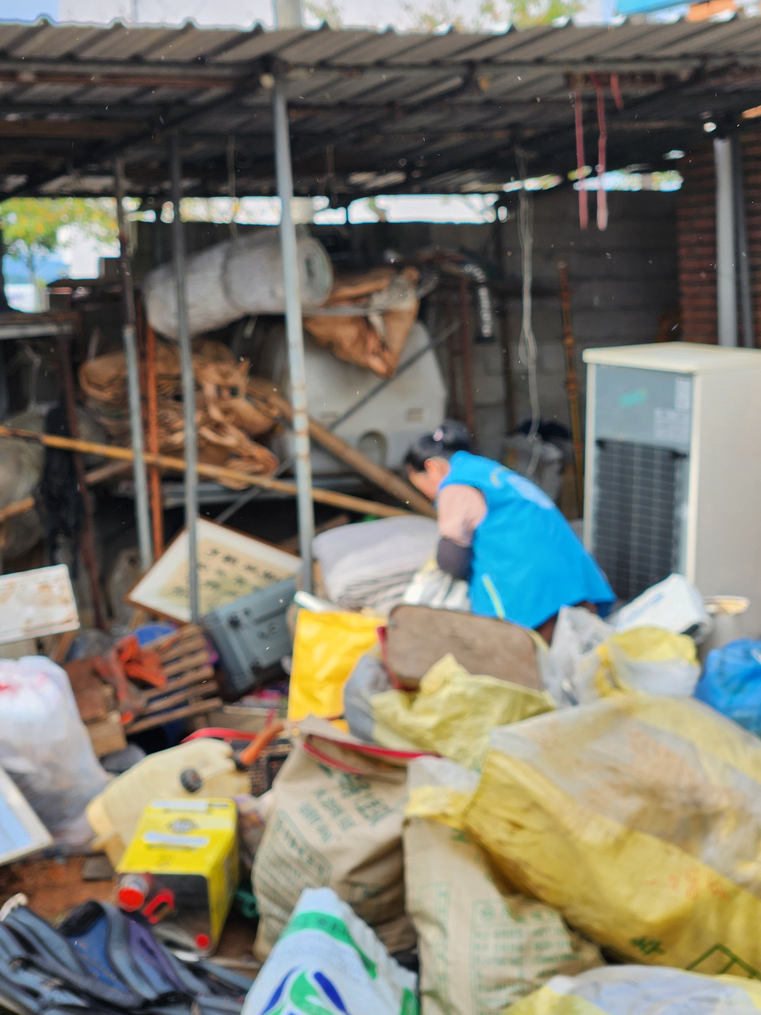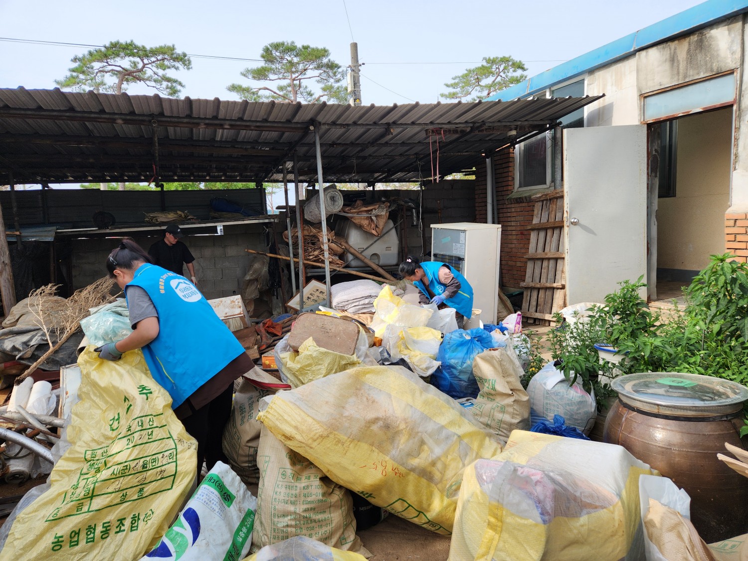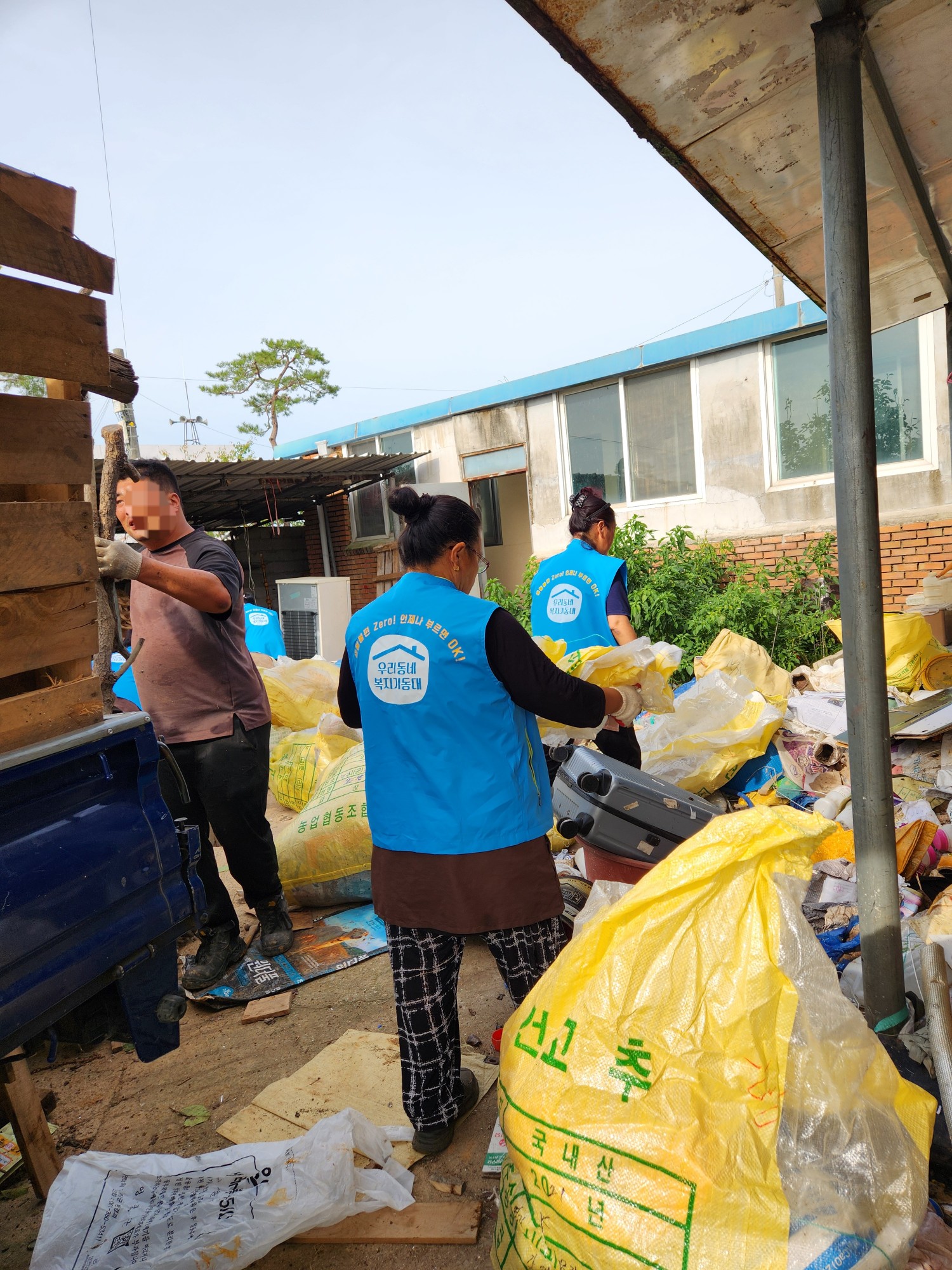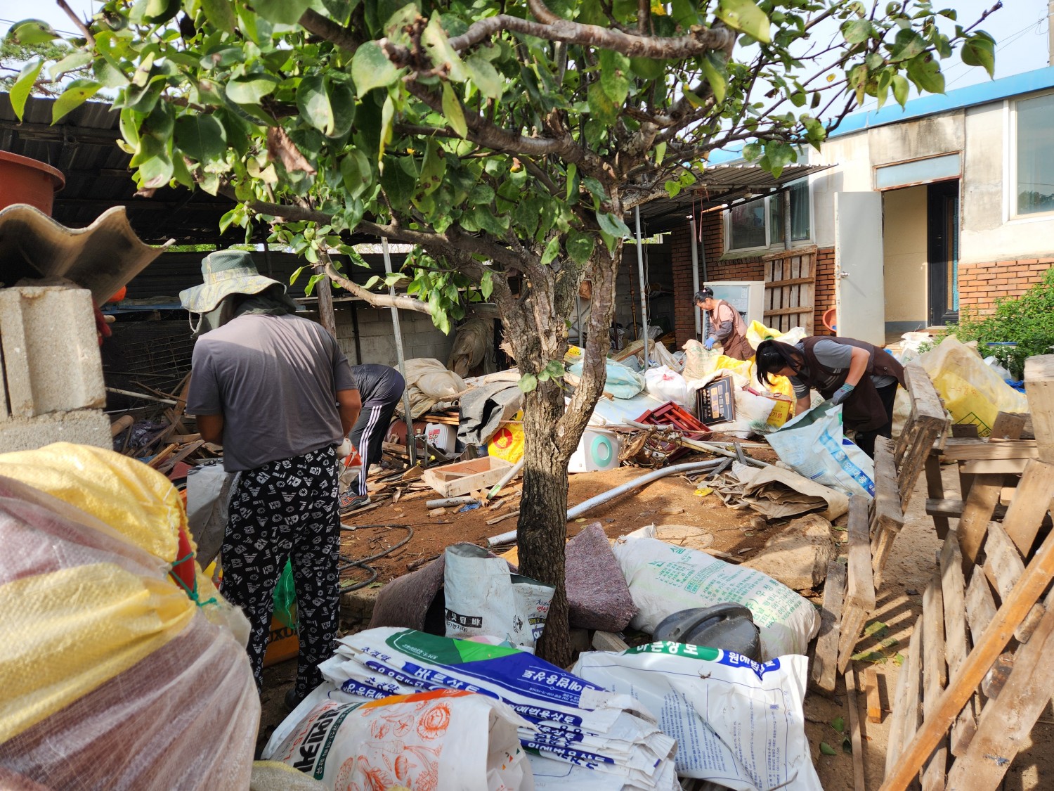 2023년에도 집청소봉사활동을 했던 대상자가 치매상태가 진행되어 심해진 집안밖의 쓰레기들을 치우느라 구슬땀을 펼쳤다