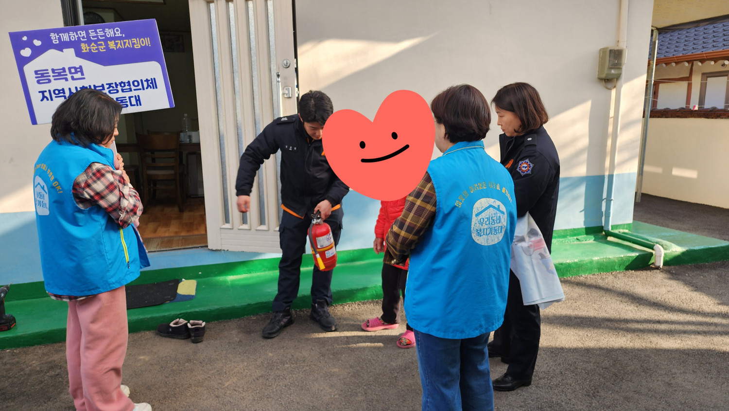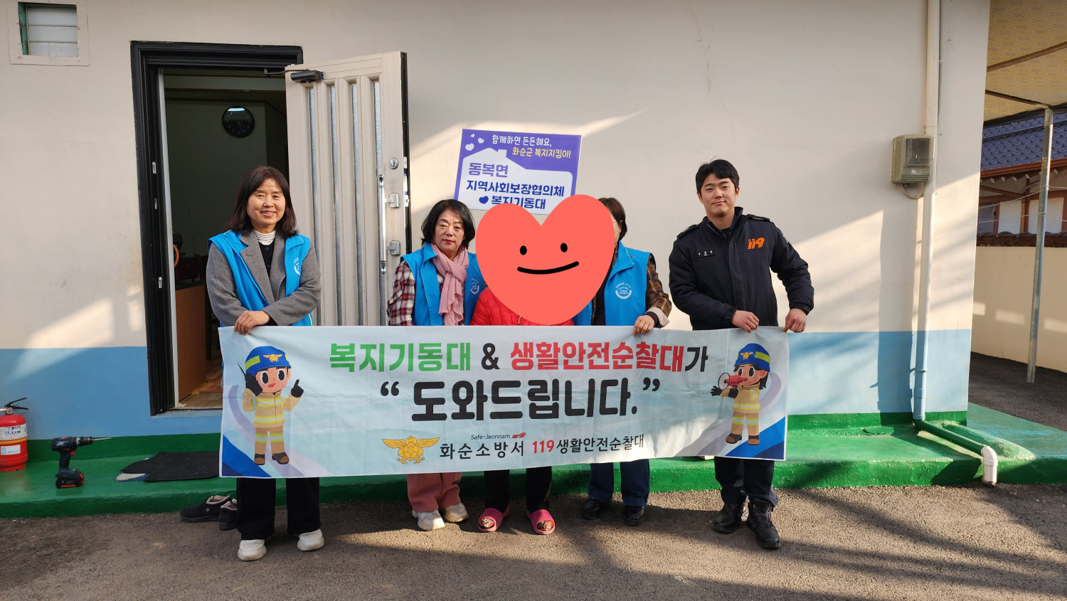 -활동내용:동복면지역사회보장협의체(복지기동대)와 화순소방서 생활안전순찰대는 동절기 화재발생 위기시 산소발생마스크 착용과 집안내부에 미끄럼방지매트를 설치하여 겨울철 어르신의 더욱 안전한 생활을 할수있도록하였다