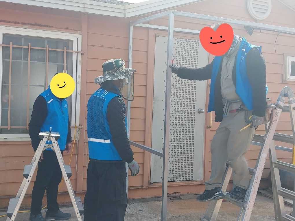 이에 우리동네복지기동대는 할머니의 안전한 생활을 위해 주택 출입구 전면에 덧문 설치 시공 공사를 진행하였습니다. 공사와 함께 안부를 살피며 생활 불편 사항도 점검하는 시간을 가졌습니다.