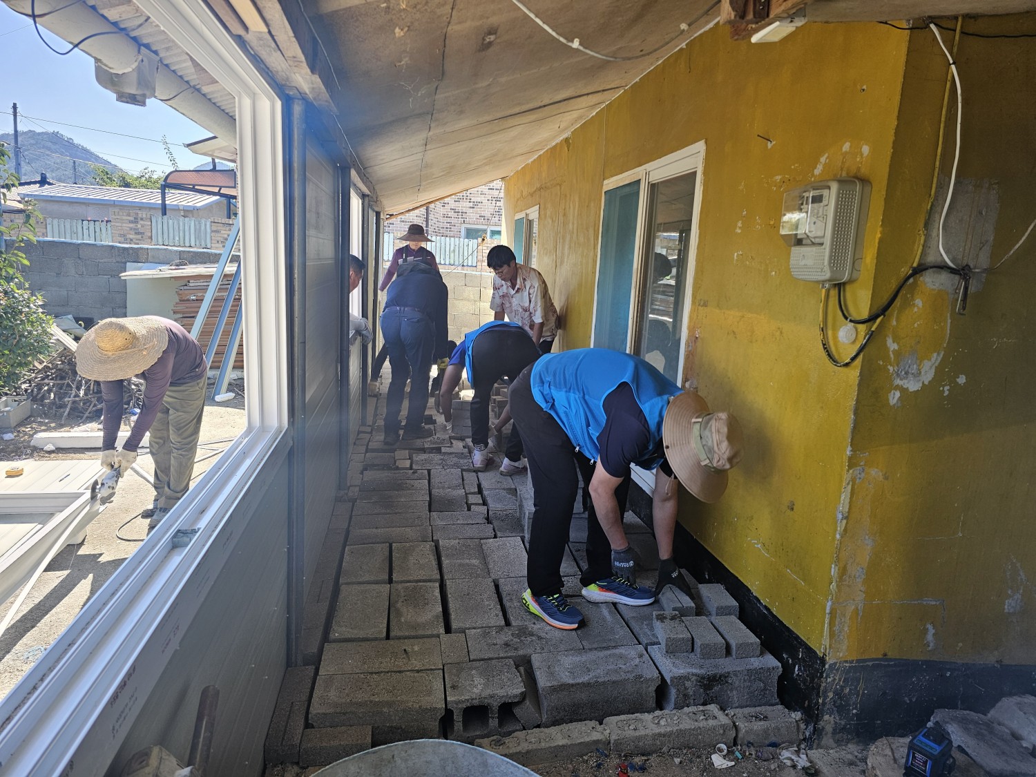 - 내용 : 의신면 봉사단체와 복지기동대 민관협력 집수리를 진행하면서, 마루 바닥이 합판으로 되어 곳곳이 썩어 위험하여 바닥 철거 후 몰탈 미장을 해 안전한 환경을 마련해주었다.