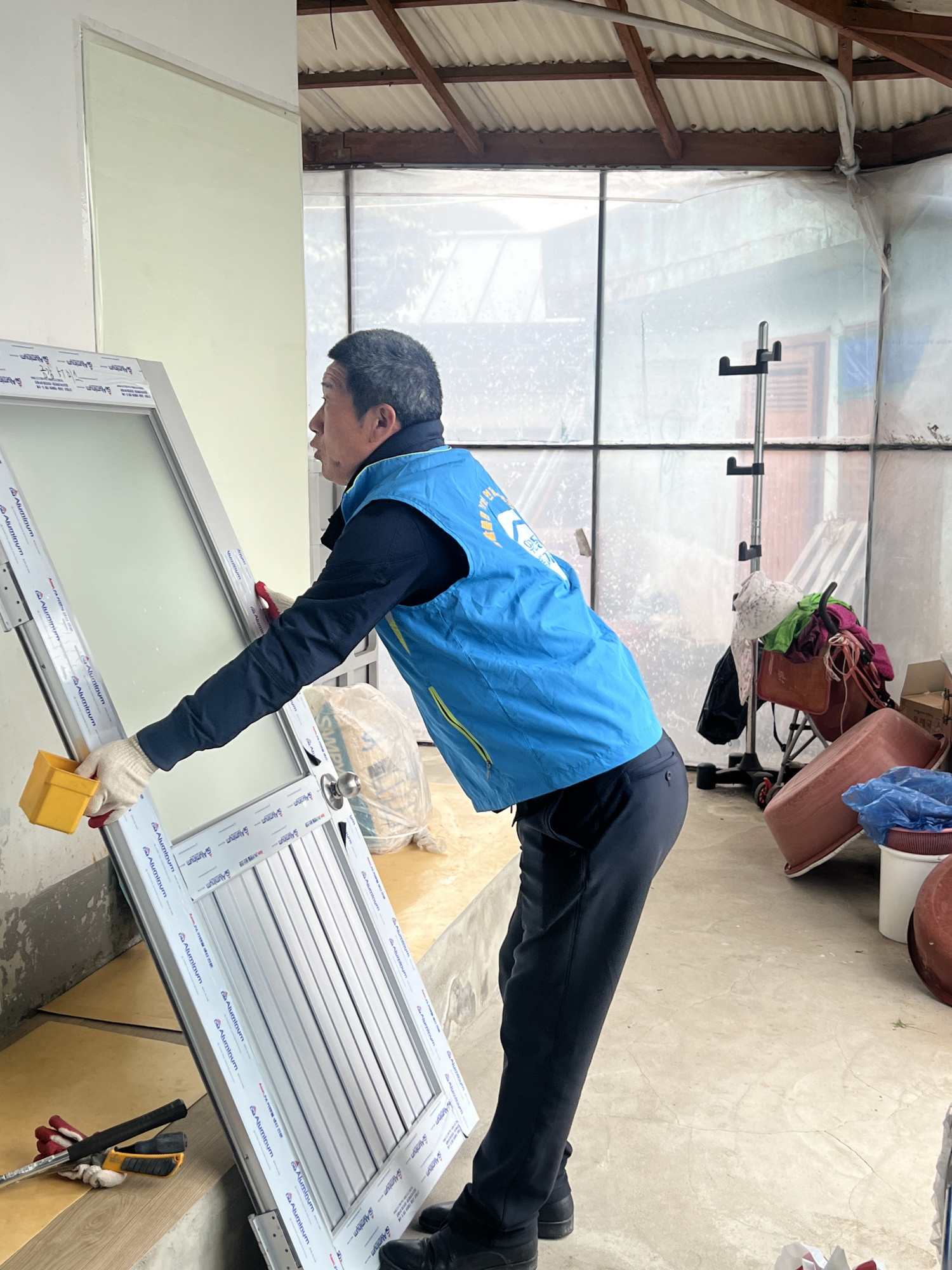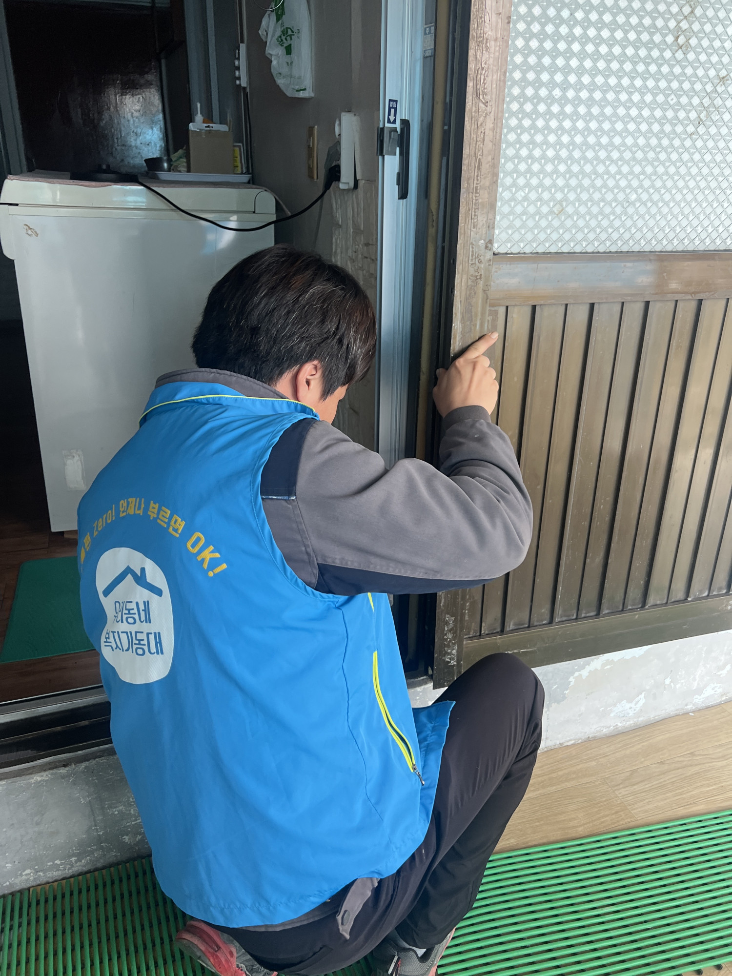 현관 문이 노후되어 복지기동대 도움이 필요했습니다 .