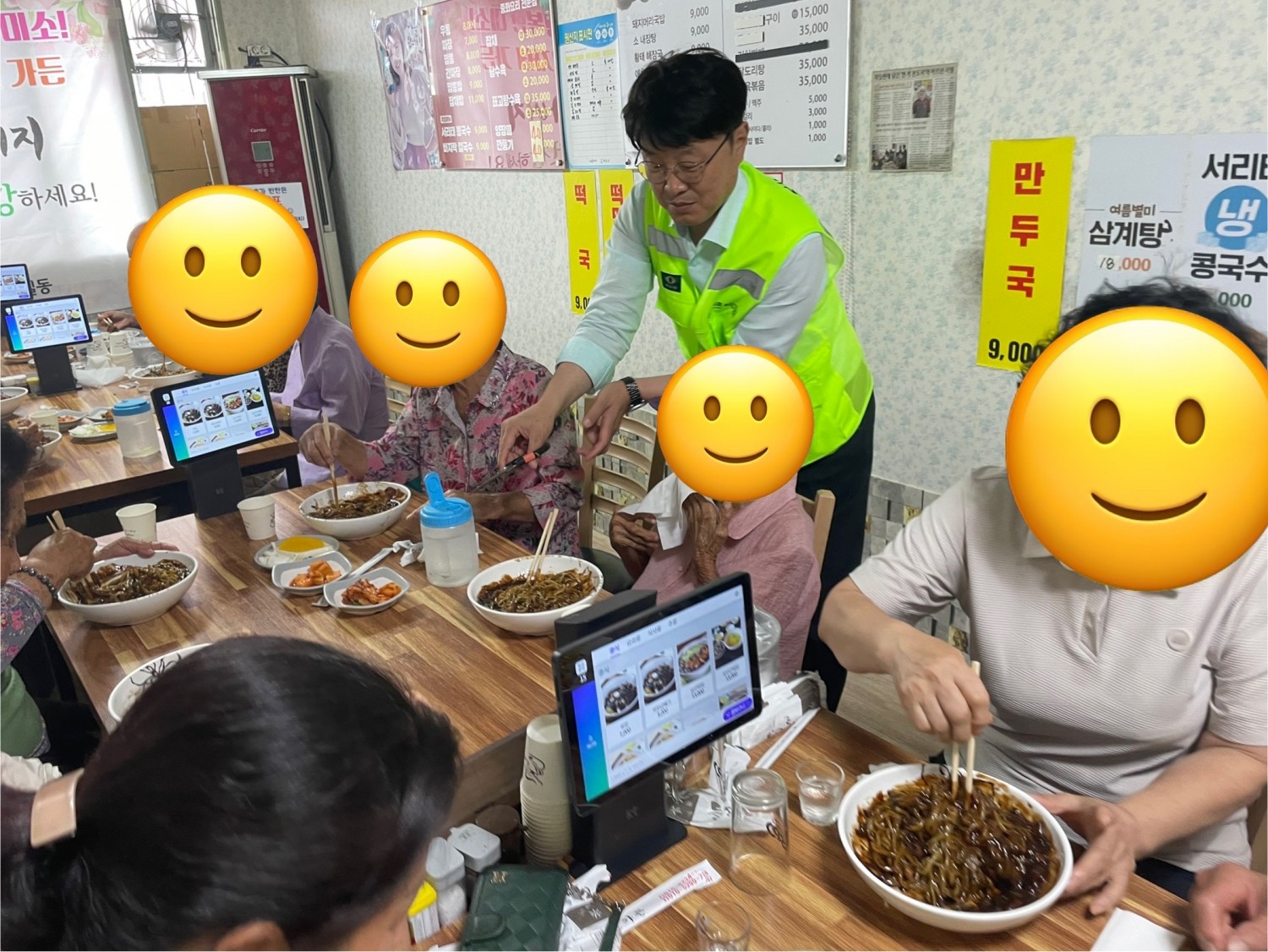 매월 넷째주 월요일 삼산면 주민분들을 모시고 영자네 가든에서 무료자장면 급식 봉사를 진행합니다?