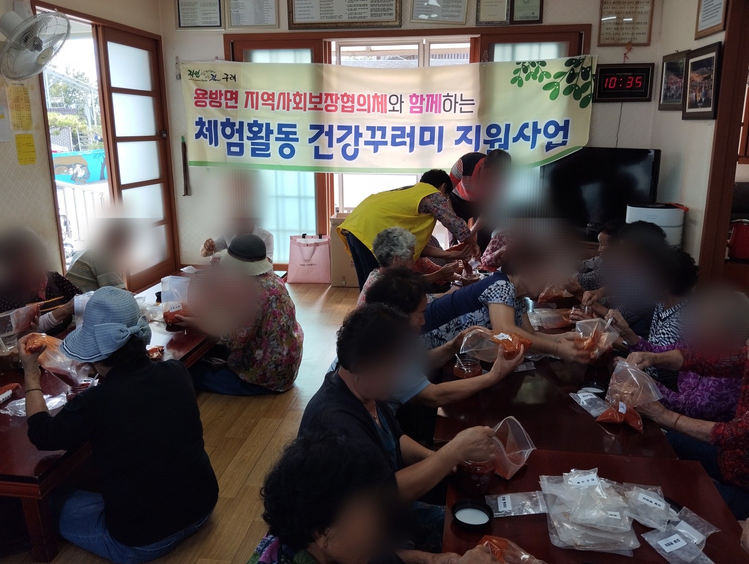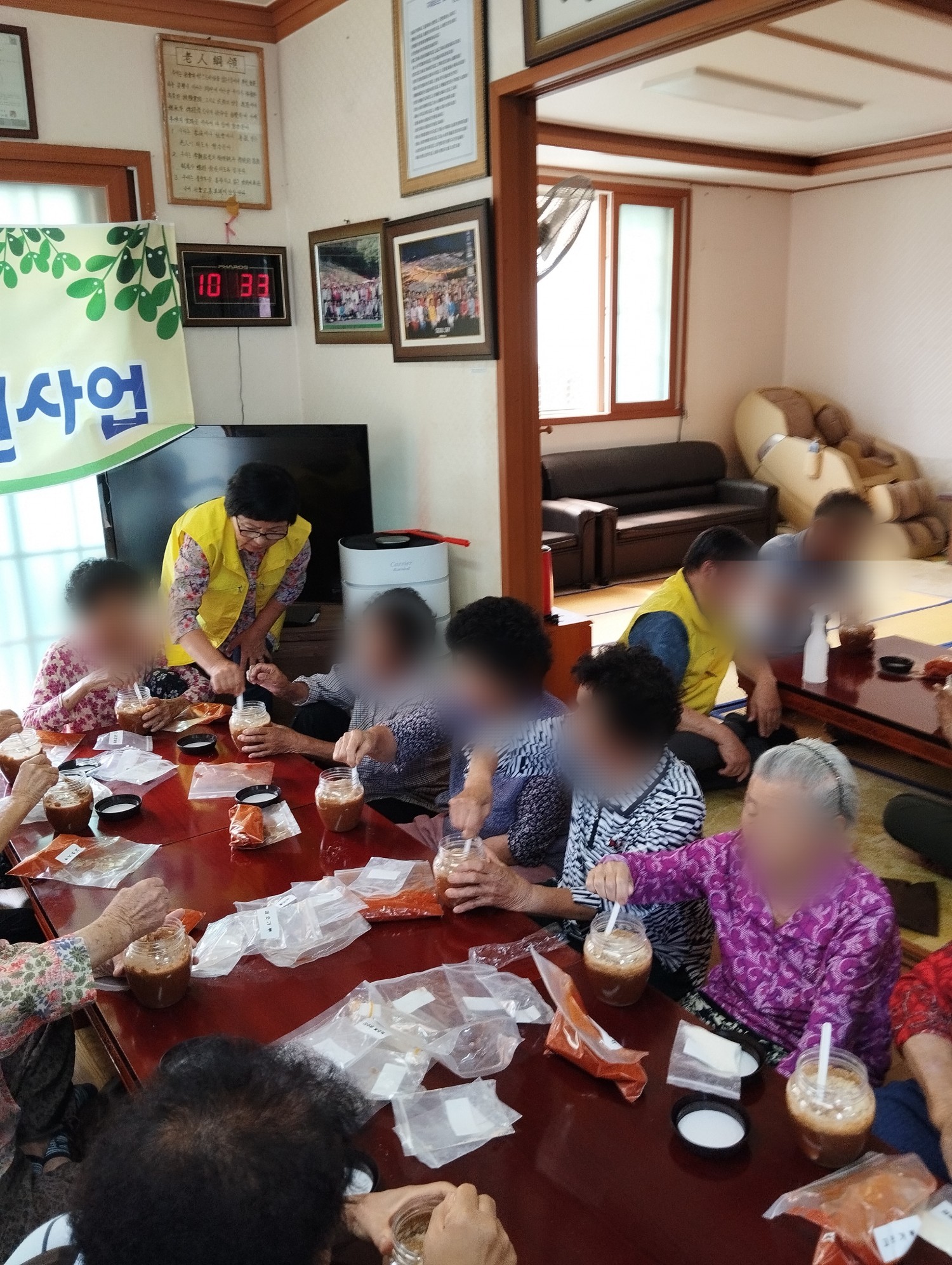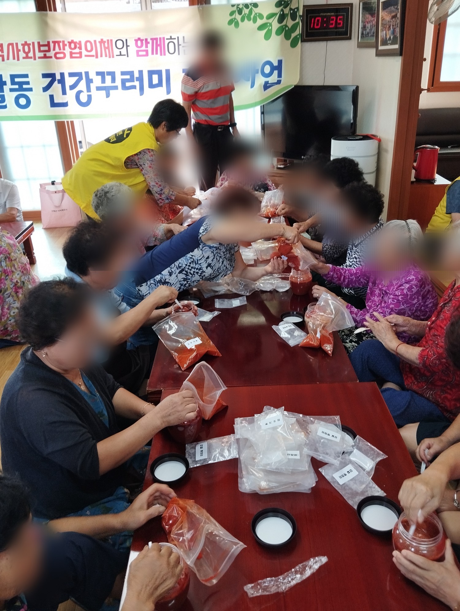 내용: 지역사회보장협의체와 함께하는 꾸러미 체험 고추장만들기 현장에 복지기동대 대원님들께서 봉사를 해주셨습니다