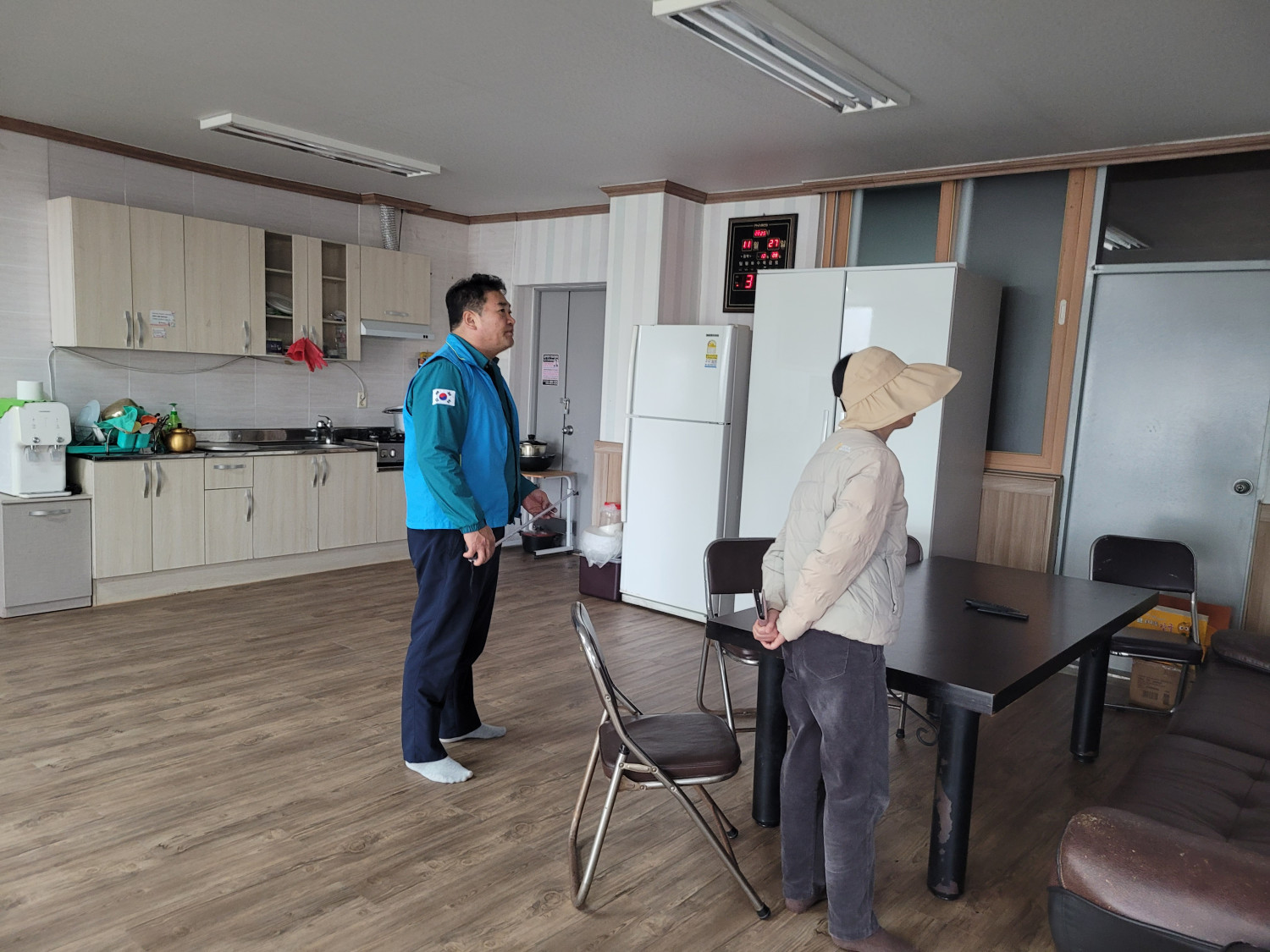 * 출장내용 : 난방, 전기, 위생 설비등 노후 시설을 확인하고, 경로당 이용 어르신과 주민들의 건의사항을 청취 하였으며 특히 노후된 안마기 교체 등 생활 불편사항을 면밀히 살핌.