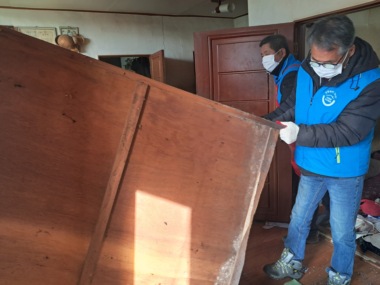 오늘도 취약계층 주거공간 개선을 위해 밑작업으로 대형 옷장 밖으로 빼내기를 도와 드렸습니다