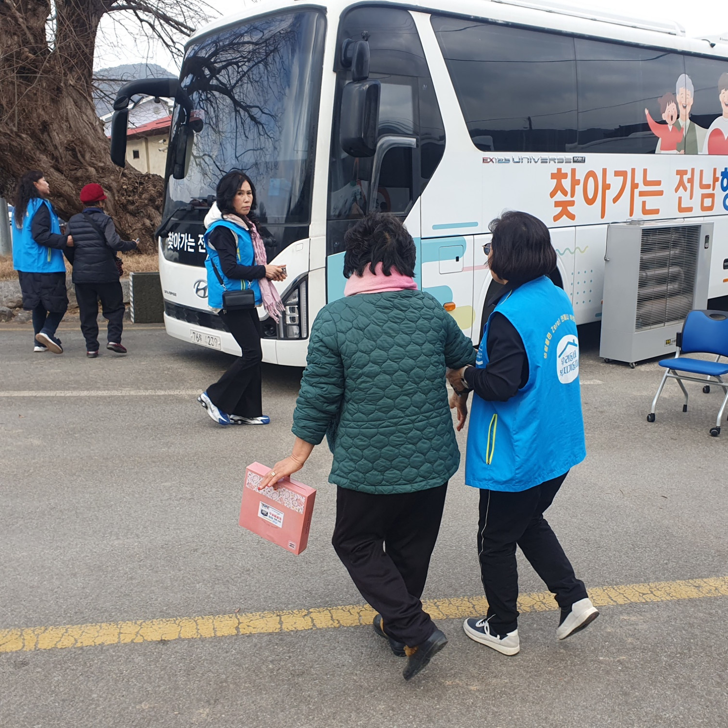 지난2월 5일 장성읍 하오마을에 복지기동대가 출동했다. 어르신 행복버스 안내. 이미용 안내하면서 봉사활동을 하였다