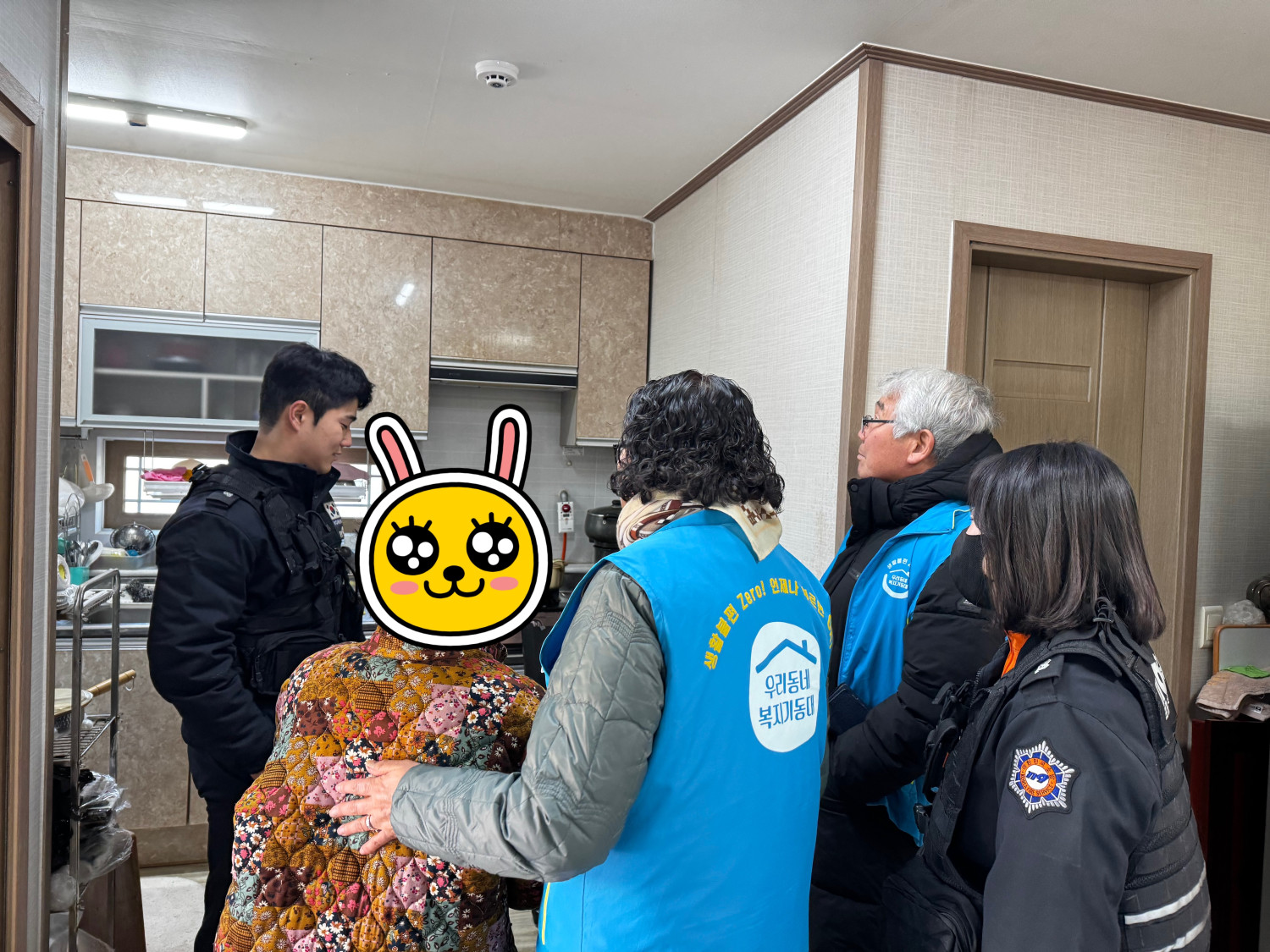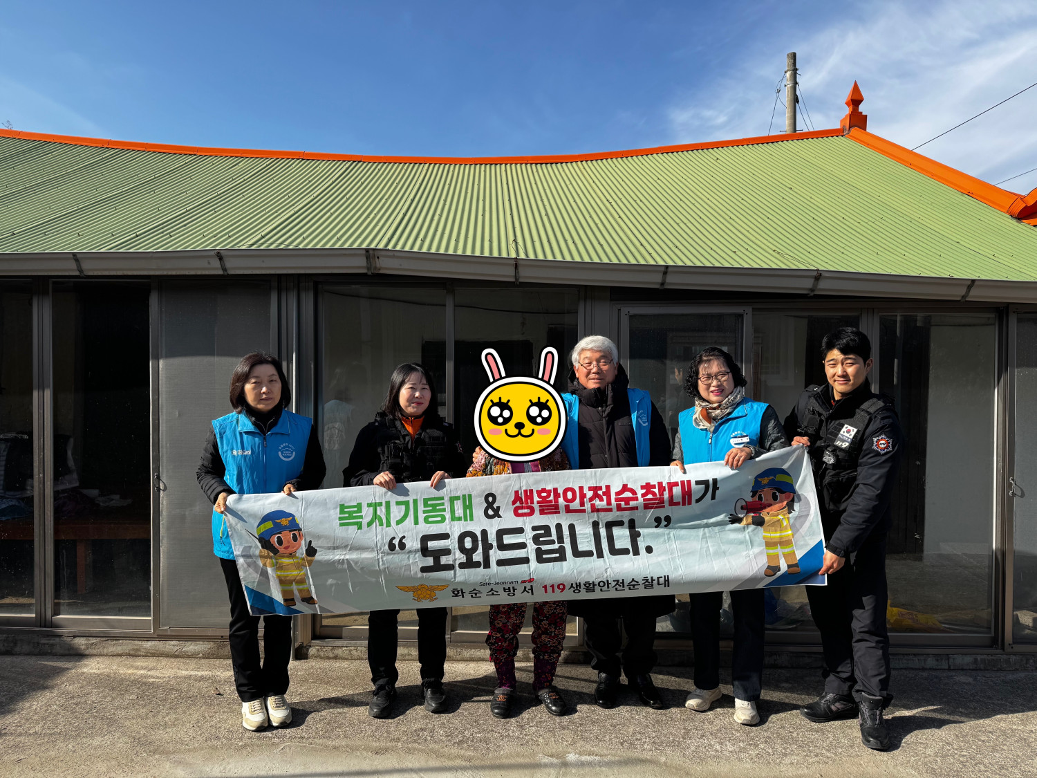 도암면 우리동네복지기동대는 2026년 2월 10일(화), 화순군 도암면 원○○길 ○ 일원에서 동절기 위기가구 5세대(문○님 등)를 대상으로 119생활안전순찰대와 합동점검을 실시하였다.