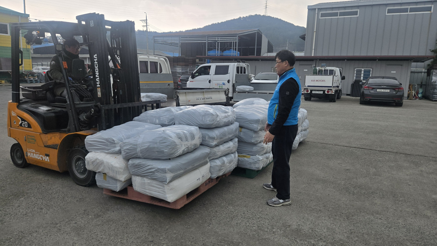 내용: 한국전복산업연합회 이종윤회장님 청바지3,500벌을 후원하여 완도부군수님,행복복지재단과 기탁식을 맞친 후. 관내 읍.면에 배부함