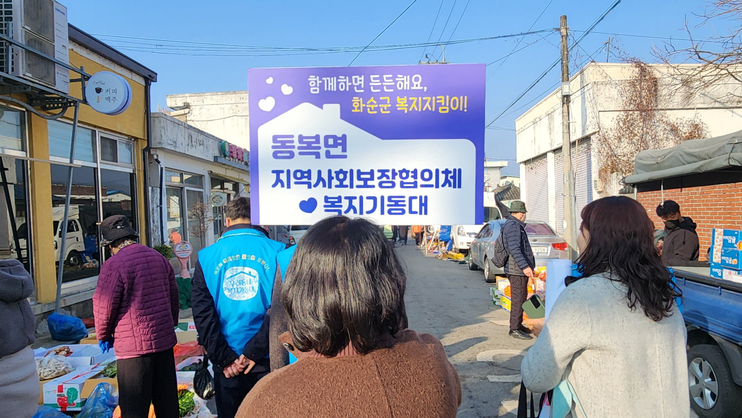 -활동내용:동복면지역사회보장협의체(복지기동대)는 전통시장에서 리후렛을 준비하여 홍보활동을 펼치고 주민의 복지욕구에대한 애로사항을 청취했다