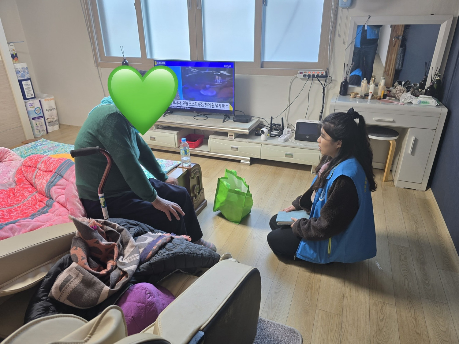 - 이장님 통해 생활이 불편한 마을주민이 있다는 이야기를 듣고 복지기동대원과 함께 생활불편개선 사항을 청취하며 간편식, 이불을 지원함