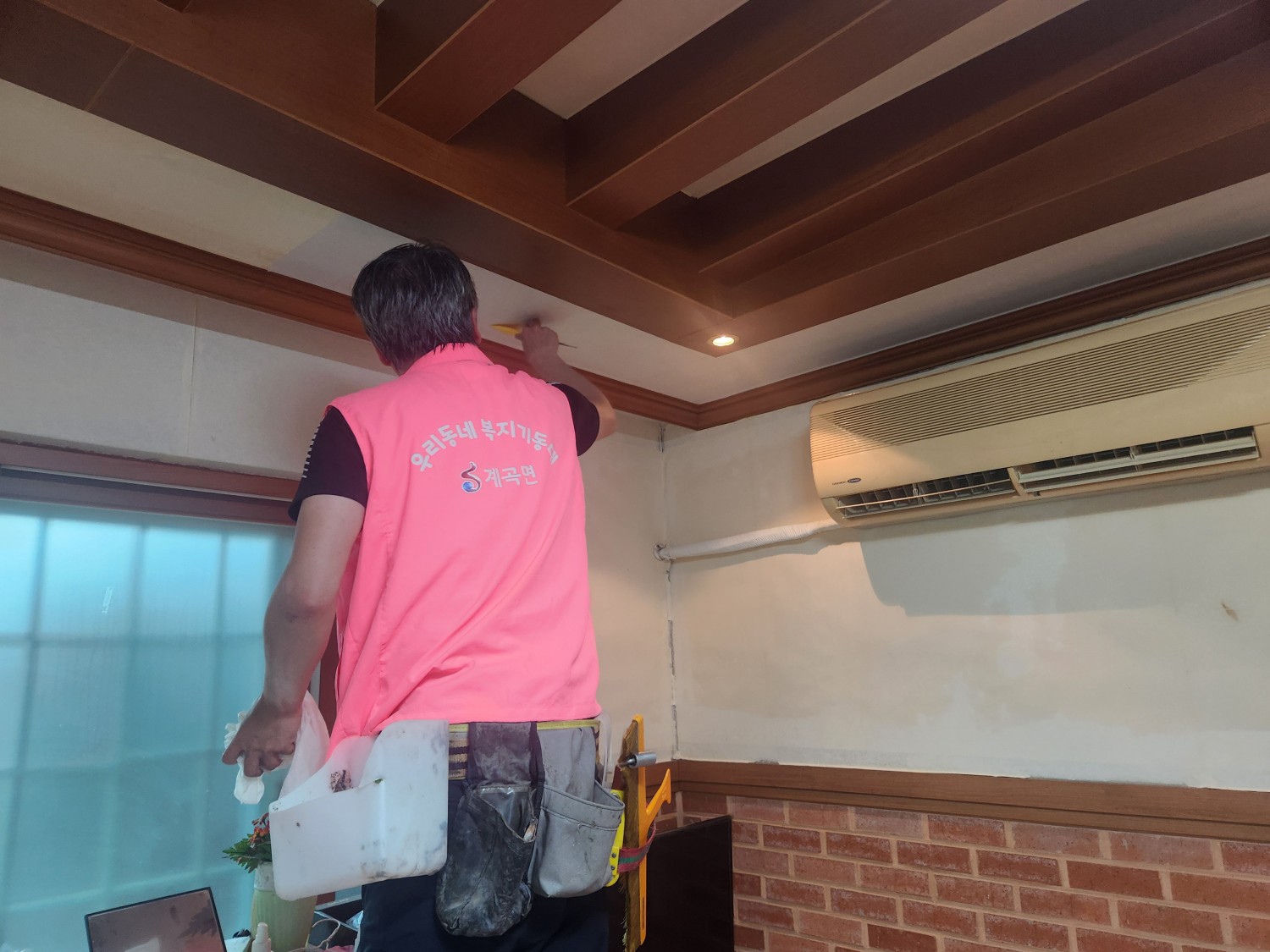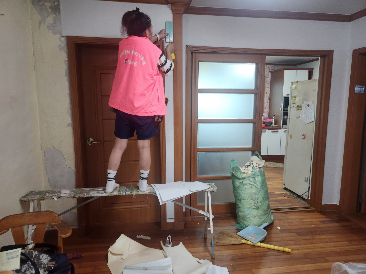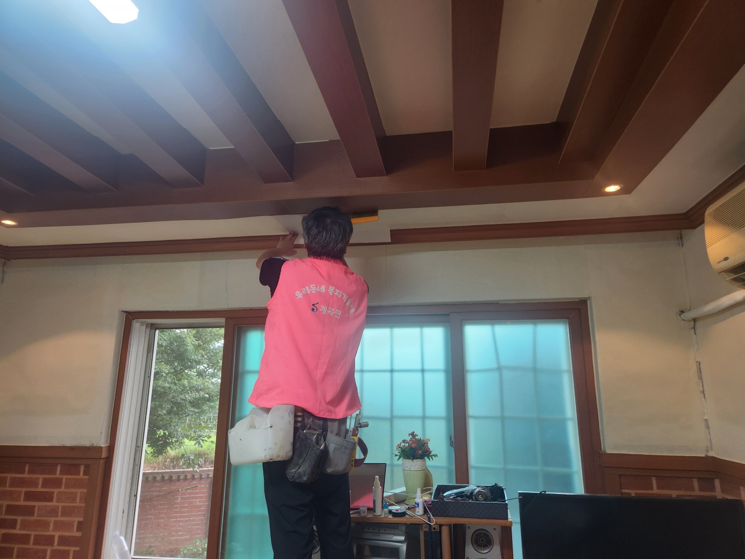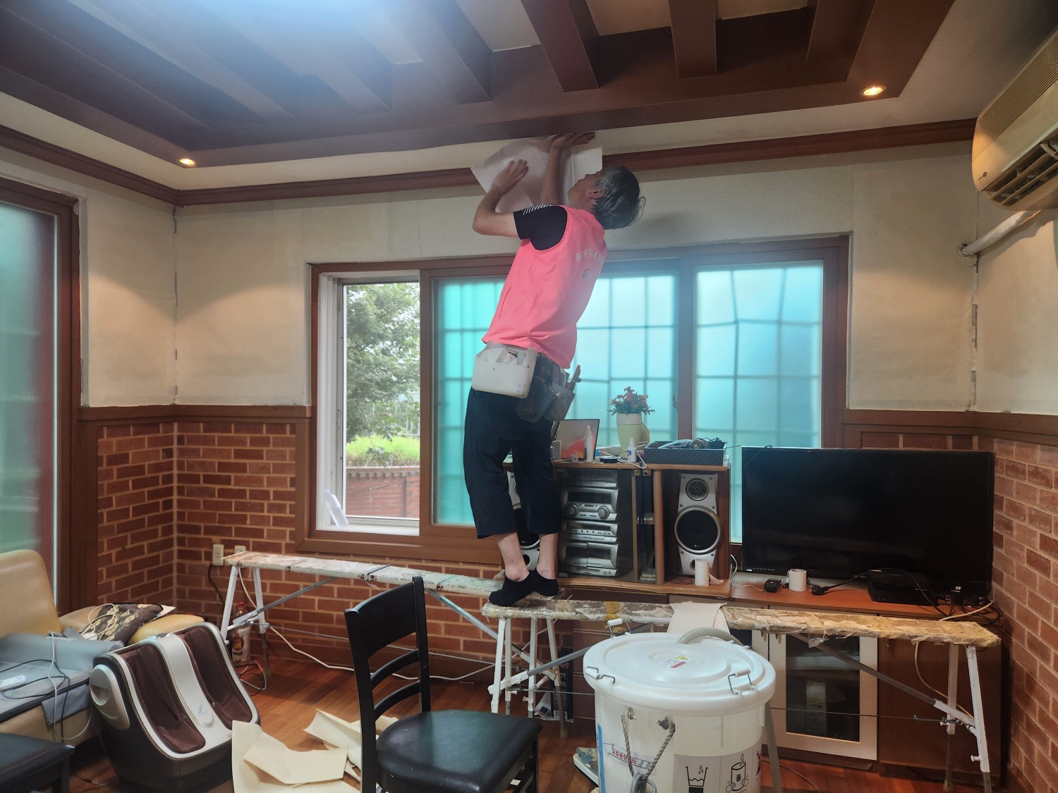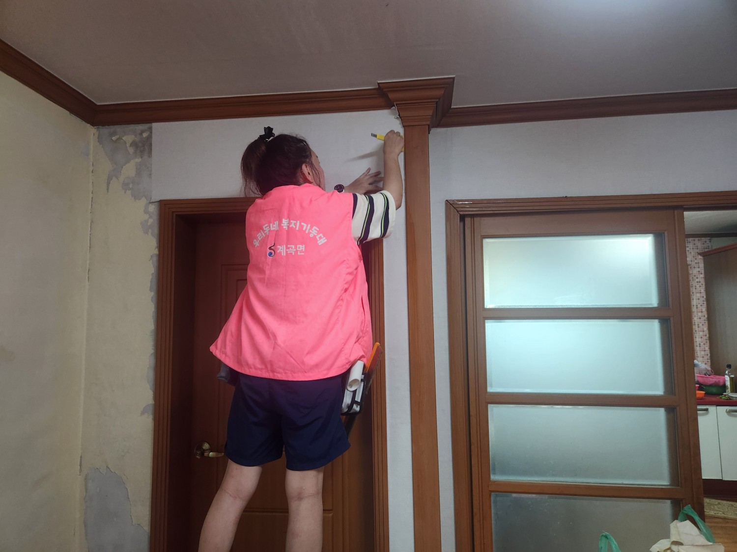 장기요양등급은 나왔지만 외부인이와서 도와주는것은 꺼려하셔 복지기동대가 출동하여 어르신이 원하시는 거실과 주방 도배를 지원해드렸습니다.?