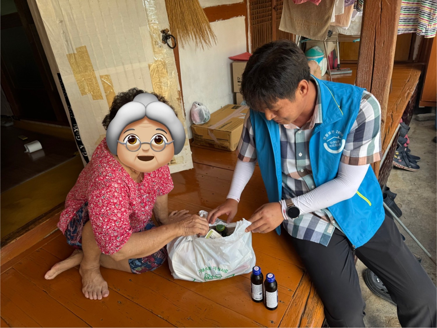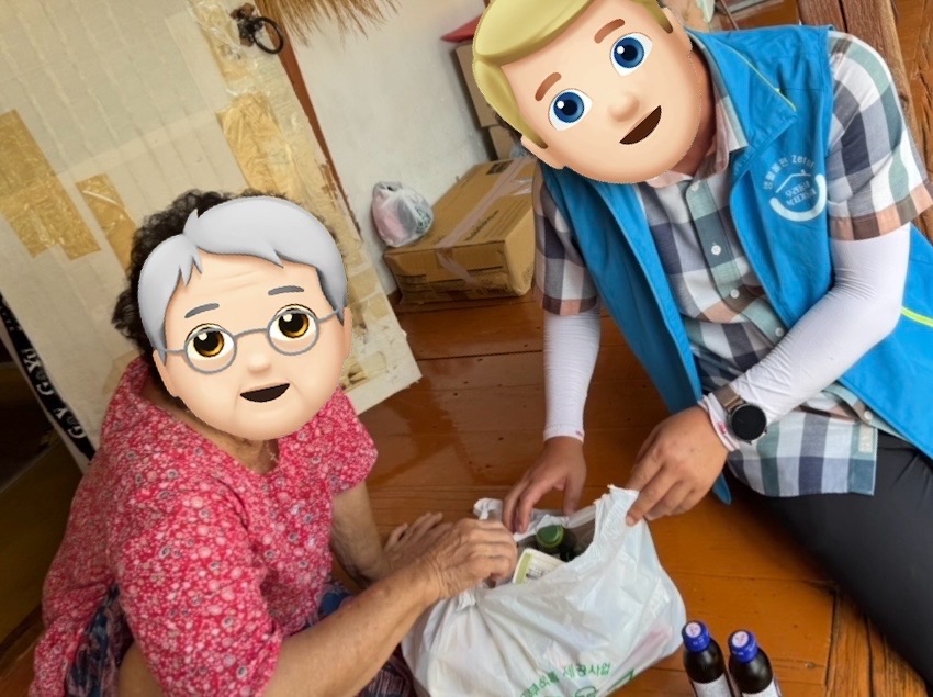 독거어르신댁에 방문했어요. 음식이 든 꾸러미를 드렸어요. 좋아하시는 어르신을 보니 더 자주 방문해야겠다는 생각이 들었습니다