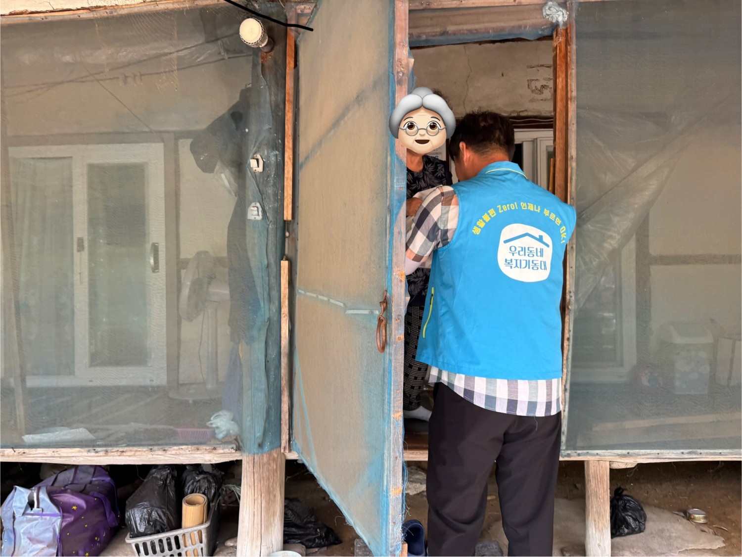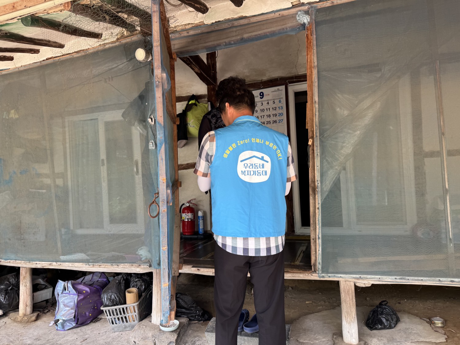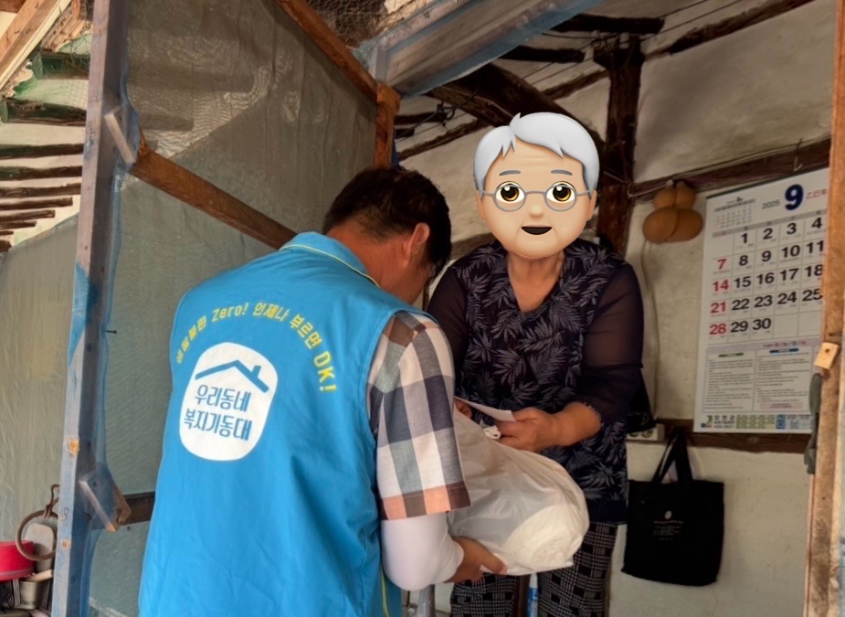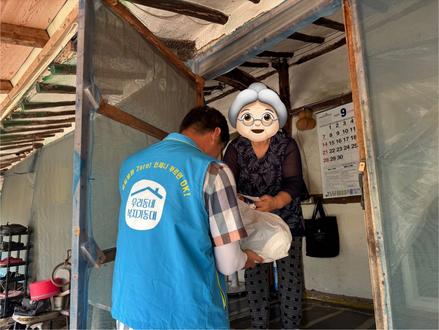 혼자 사시는 어머님댁에 방문해서 음식꾸러미를 전달했습니다. 복지기동대가 한달에 한번 어르신 댁에 방문하여 안부를 살피며 기부식품을 드리고 있습니다.
