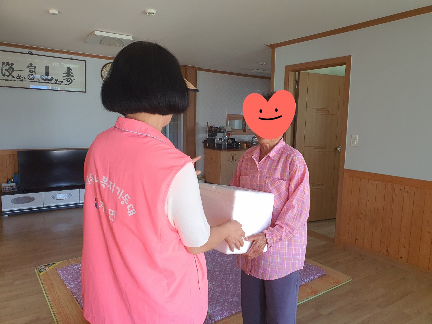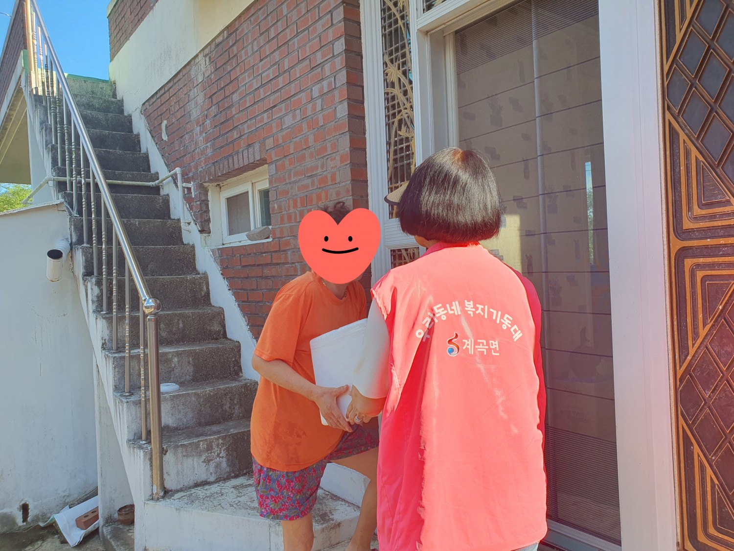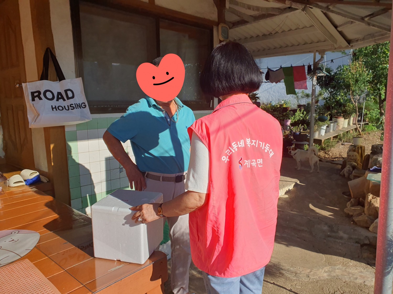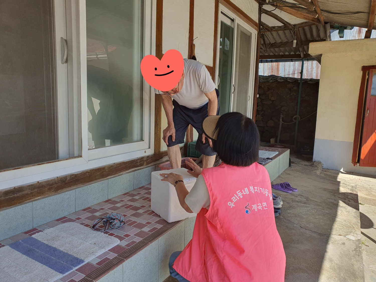 ?계곡면 복지기동대가 독거어르신 10분을 방문하여 반찬3종을 나누어 드리고 안부를 살폈습니다.